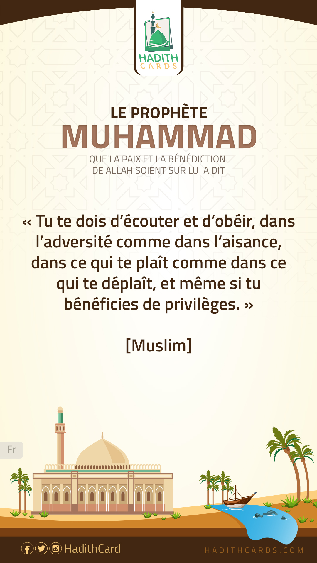Tu te dois d’écouter et d’obéir, dans l’adversité comme dans l’aisance, dans ce qui te plaît comme dans ce qui te déplaît, et même si tu bénéficies de privilèges