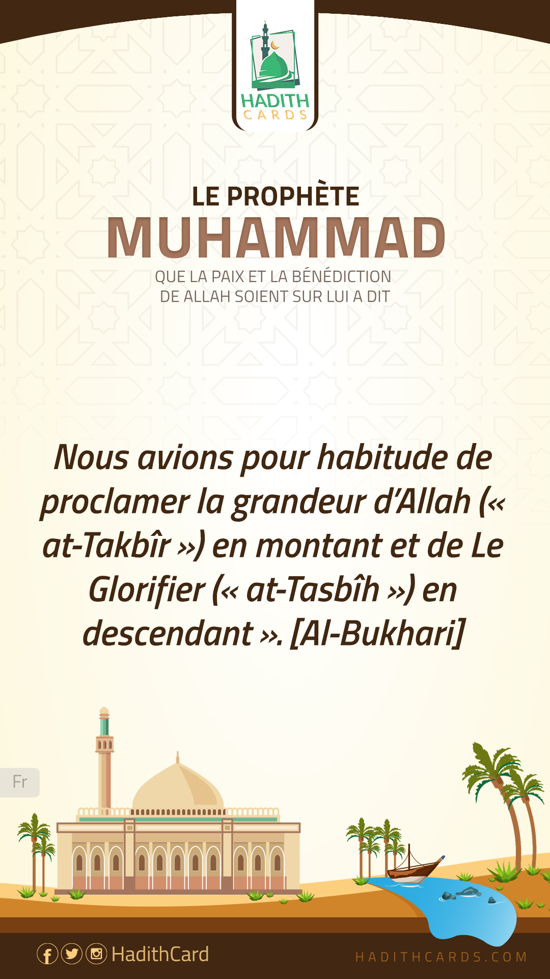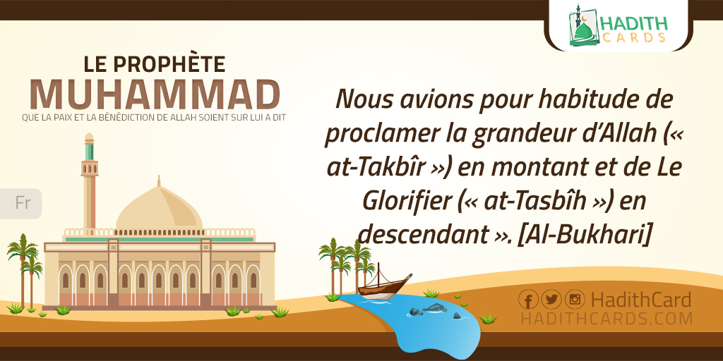 Nous avions pour habitude de proclamer la grandeur d’Allah (« at-Takbîr ») en montant et de Le Glorifier (« at-Tasbîh ») en descendant