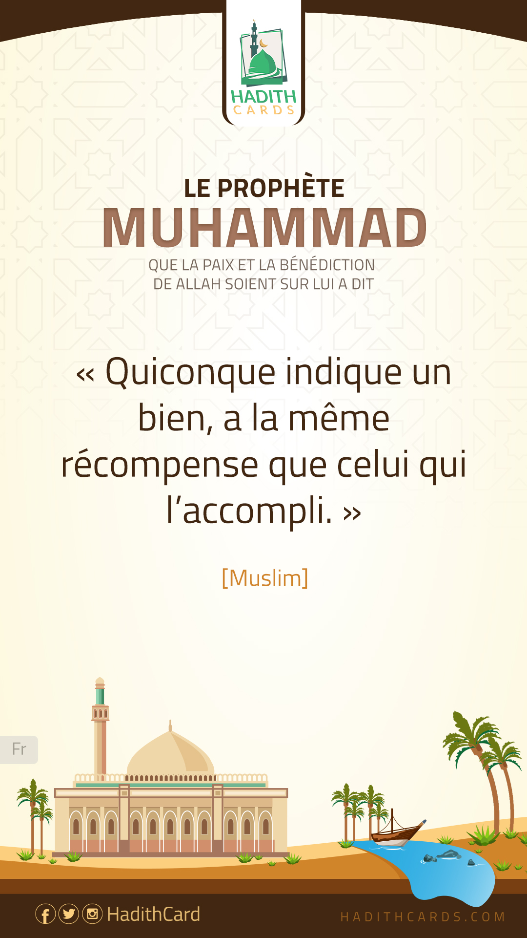 «من دلَّ على خير, فله مثلُ أجرِ فاعلِه». (مسلم)