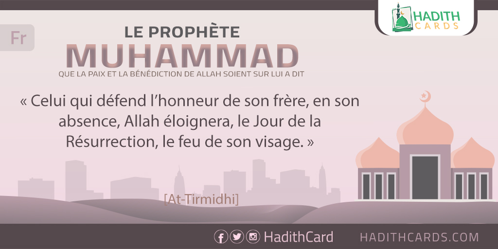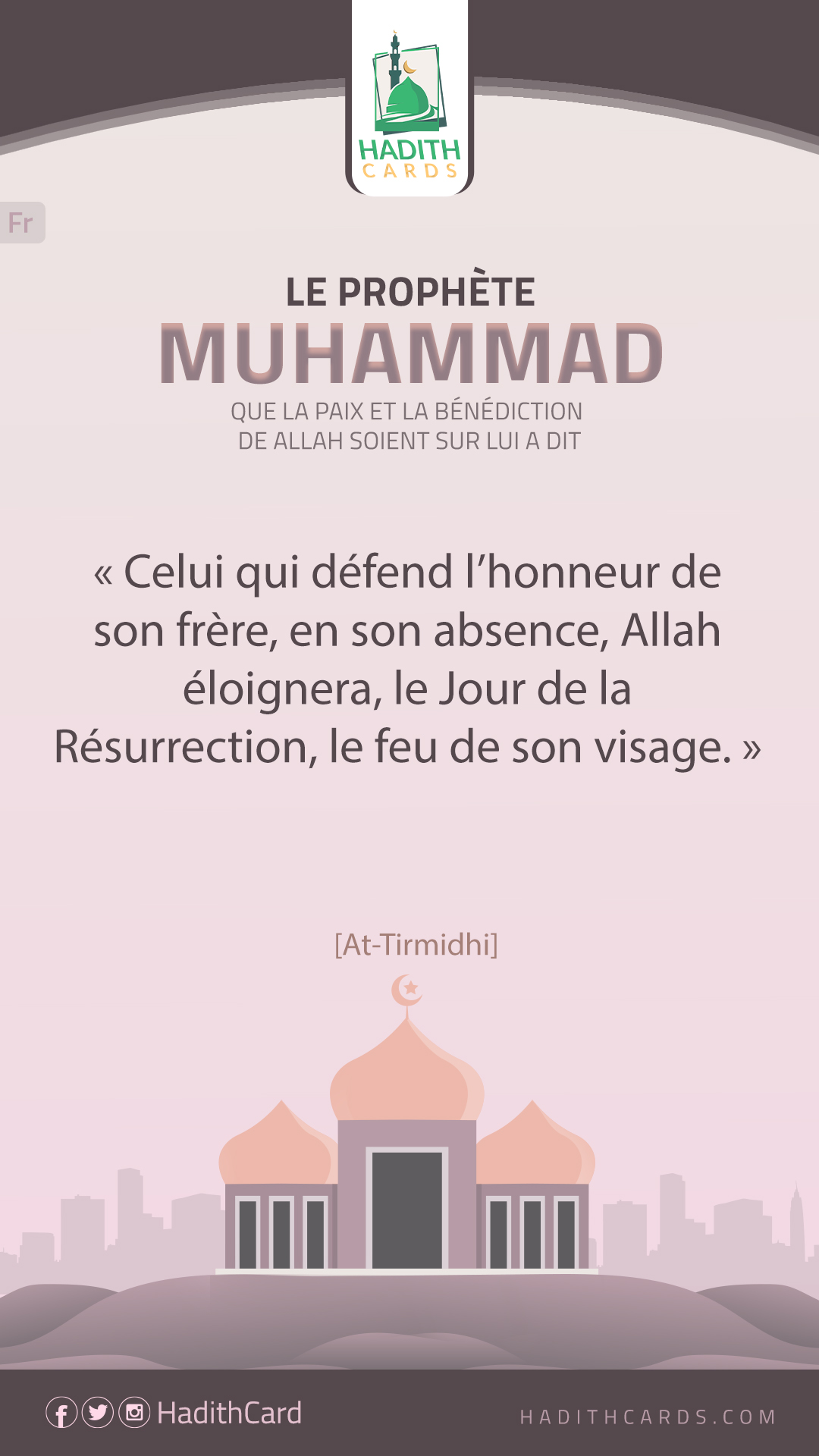 Celui qui défend l’honneur de son frère, en son absence, Allah éloignera, le Jour de la Résurrection, le feu de son visage