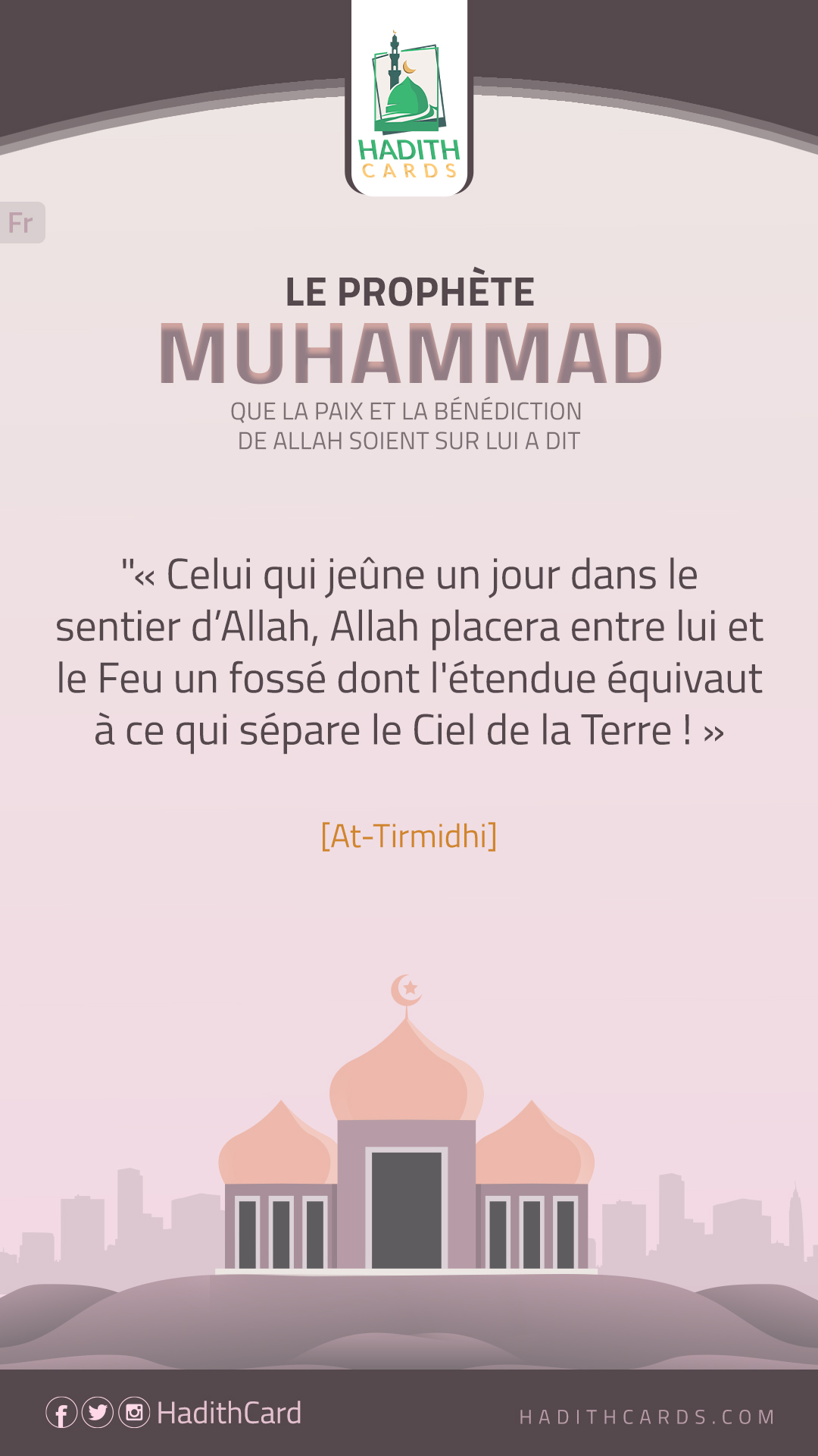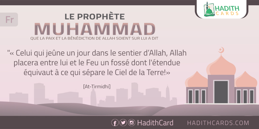 Celui qui jeûne un jour dans le sentier d’Allah, Allah placera entre lui et le Feu un fossé dont l'étendue équivaut à ce qui sépare le Ciel de la Terre !