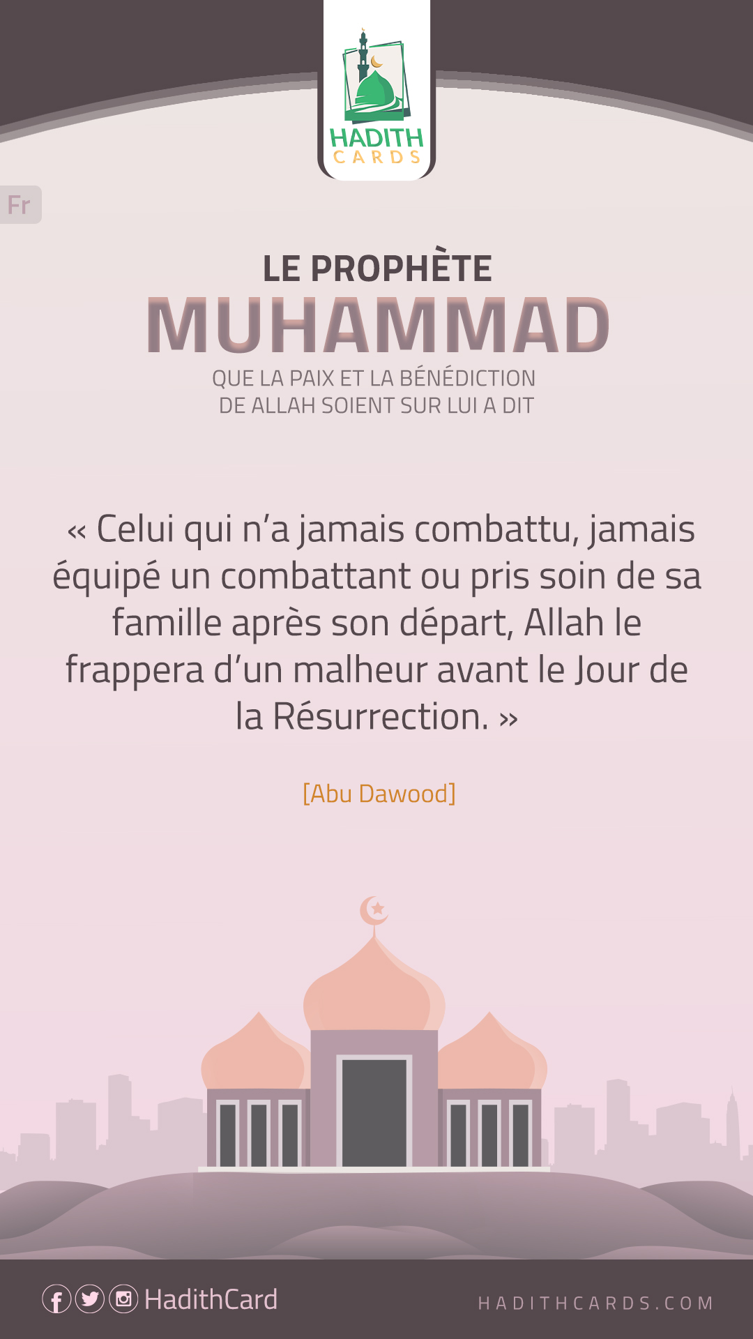 Celui qui n’a jamais combattu, jamais équipé un combattant ou pris soin de sa famille après son départ, Allah le frappera d’un malheur avant le Jour de la Résurrection