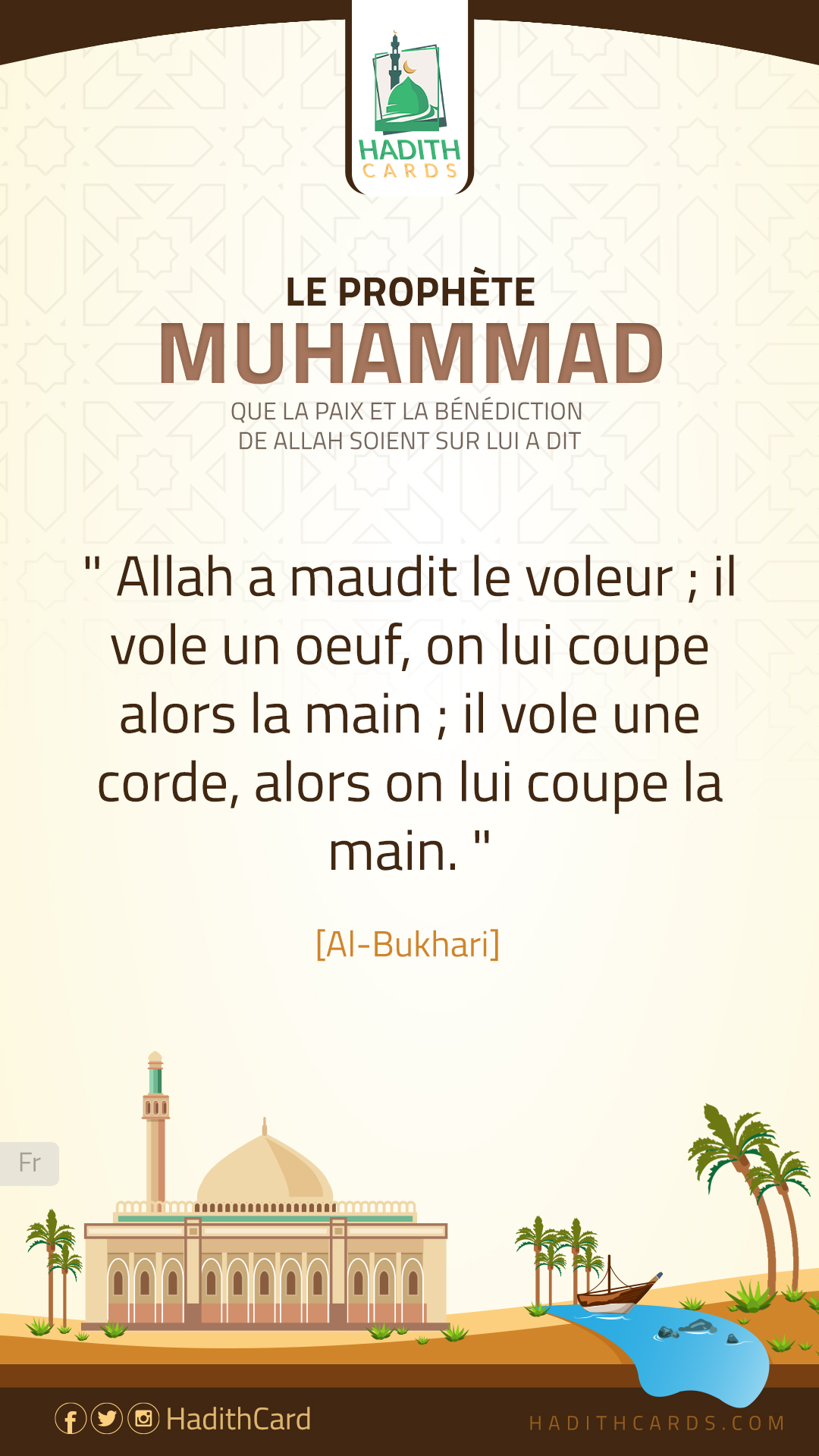 Allah a maudit le voleur ; il vole un oeuf, on lui coupe alors la main ; il vole une corde, alors on lui coupe la main