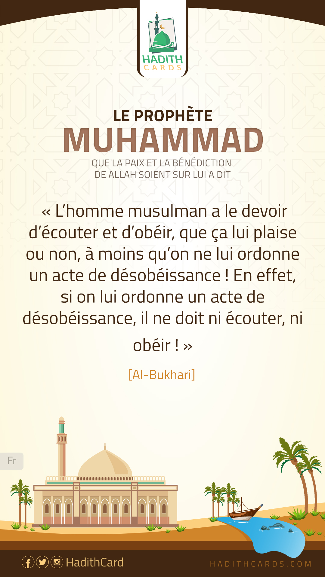 L’homme musulman a le devoir d’écouter et d’obéir, que ça lui plaise ou non, à moins qu’on ne lui ordonne un acte de désobéissance ! En effet, si on lui ordonne un acte de désobéissance, il ne doit ni écouter, ni obéir !