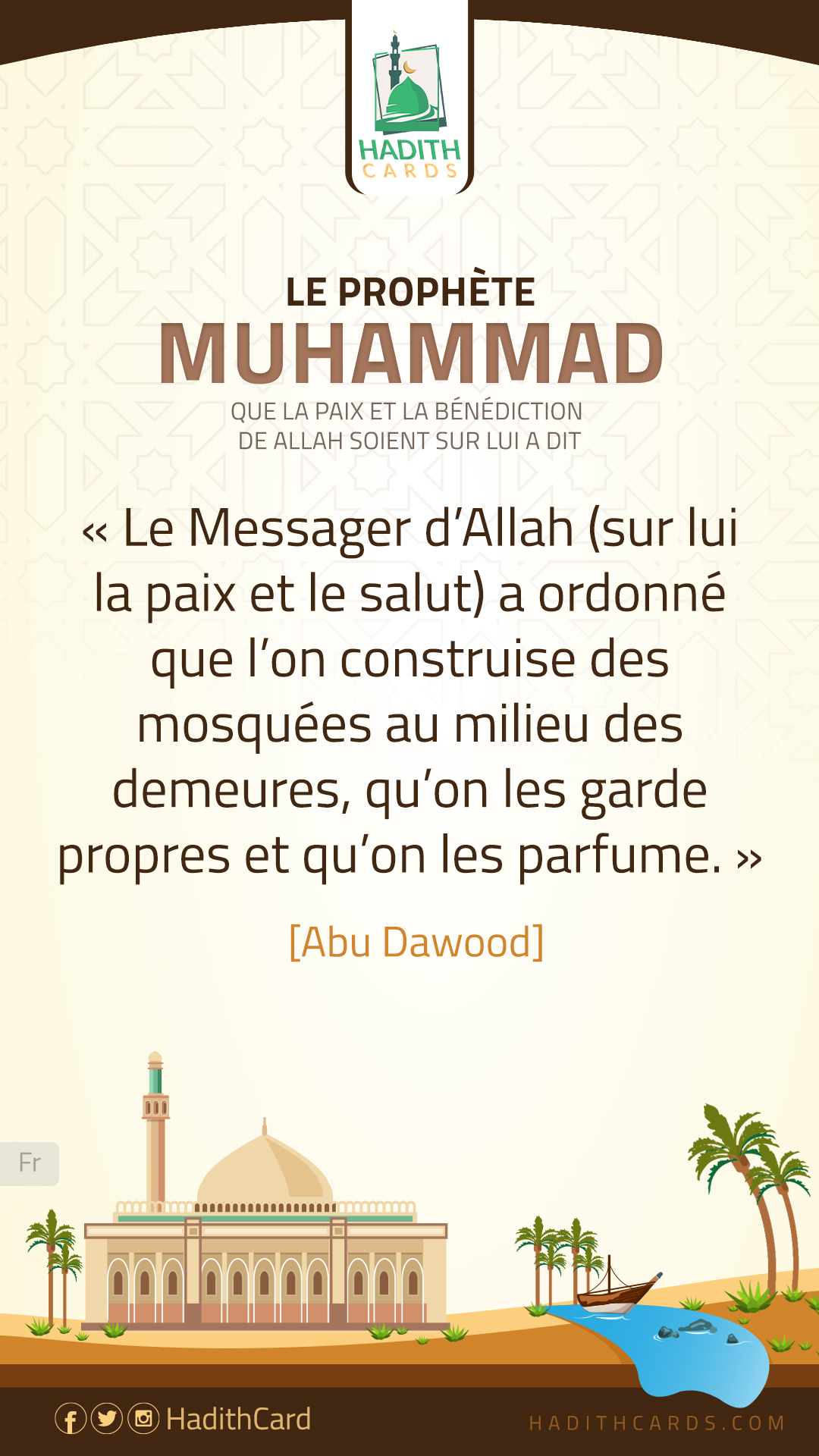 Le Messager d’Allah (sur lui la paix et le salut) a ordonné que l’on construise des mosquées au milieu des demeures, qu’on les garde propres et qu’on les parfume