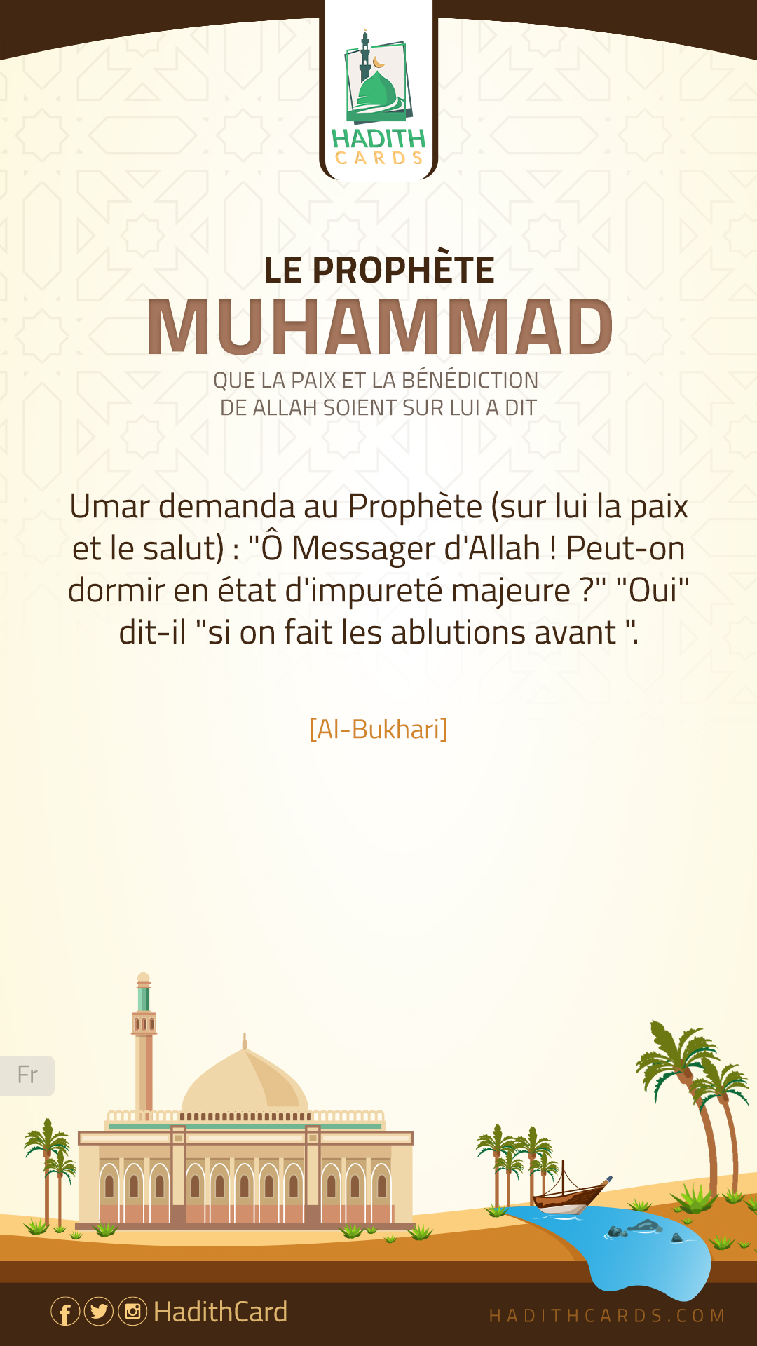 Ô Messager d'Allah ! Peut-on dormir en état d'impureté majeure ?" "Oui" dit-il "si on fait les ablutions avant
