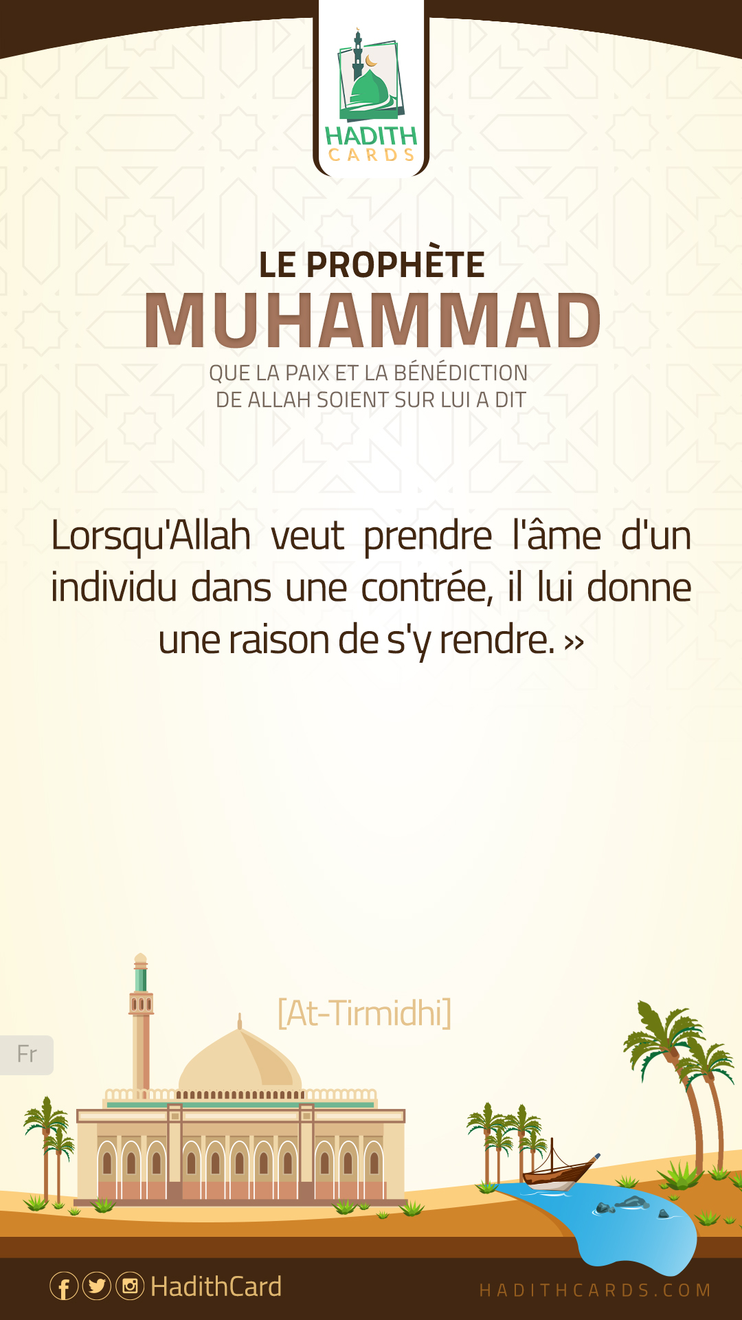 Lorsqu'Allah veut prendre l'âme d'un individu dans une contrée, il lui donne une raison de s'y rendre