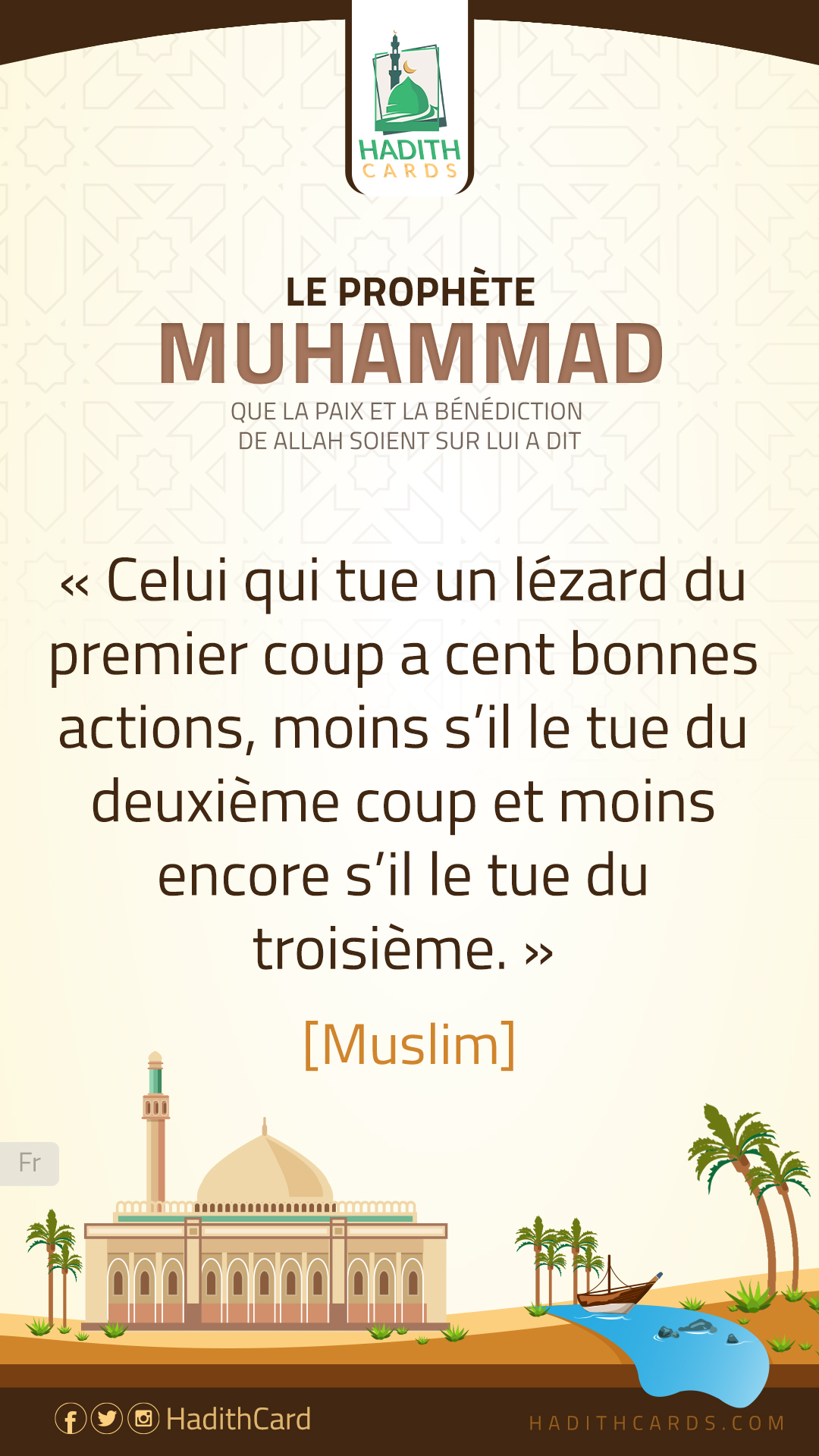 Celui qui tue un lézard du premier coup a cent bonnes actions, moins s’il le tue du deuxième coup et moins encore s’il le tue du troisième