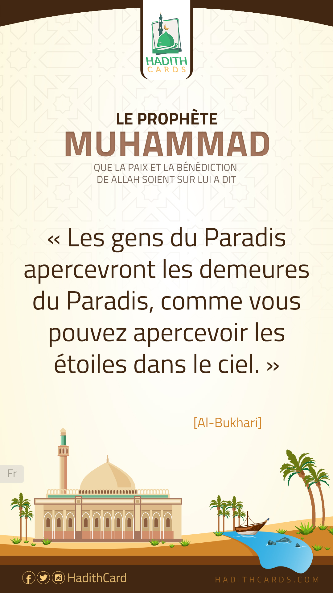 Les gens du Paradis apercevront les demeures du Paradis, comme vous pouvez apercevoir les étoiles dans le ciel