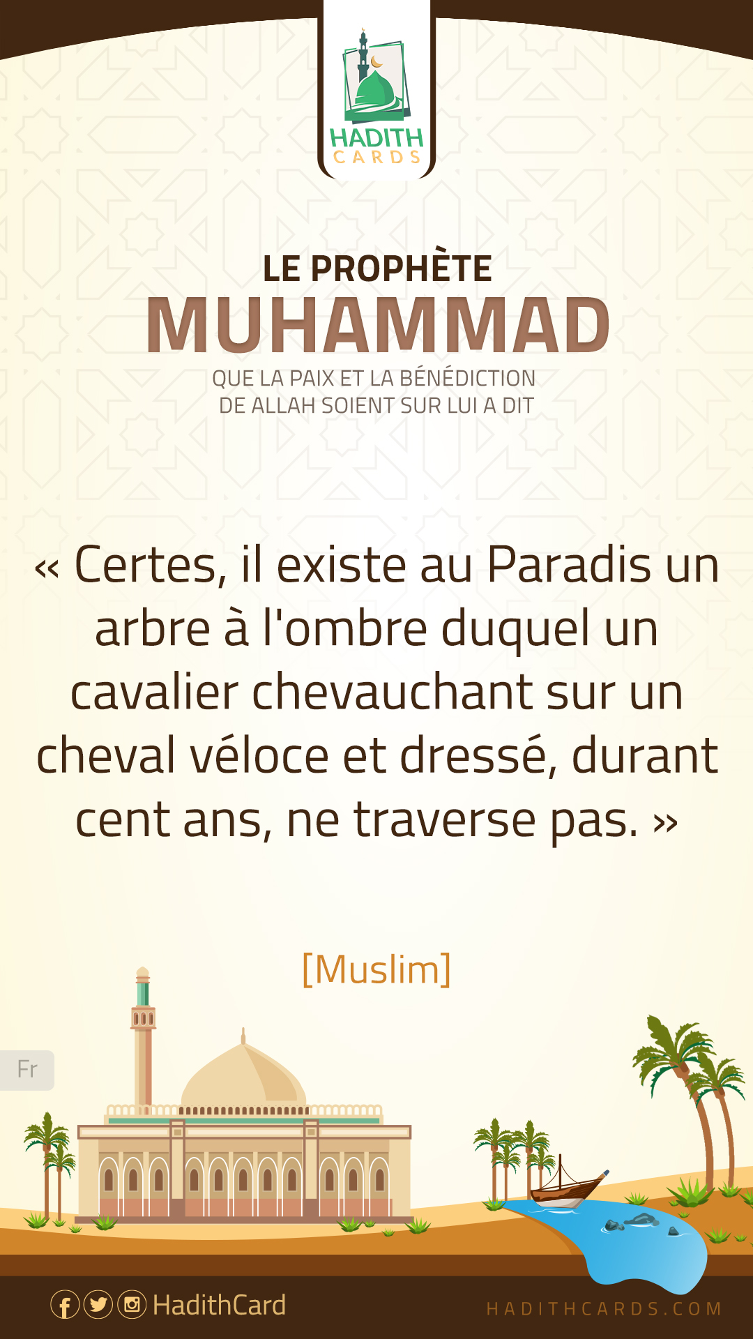 Certes, il existe au Paradis un arbre à l'ombre duquel un cavalier chevauchant sur un cheval véloce et dressé, durant cent ans, ne traverse pas