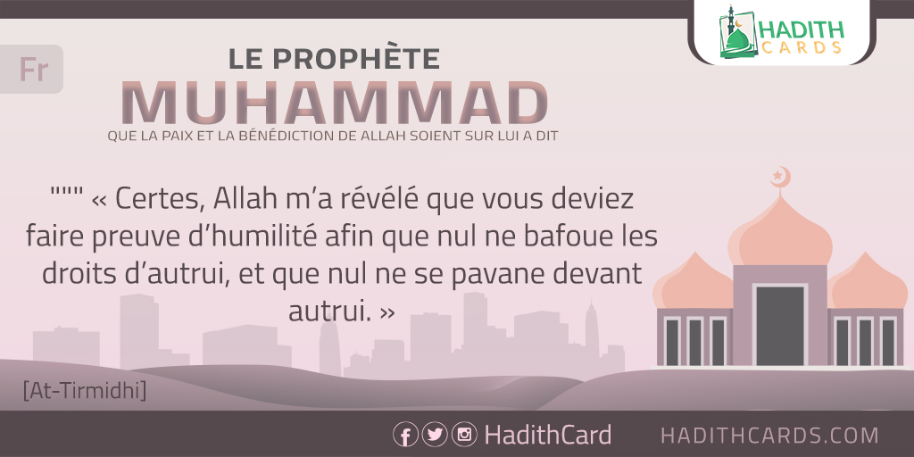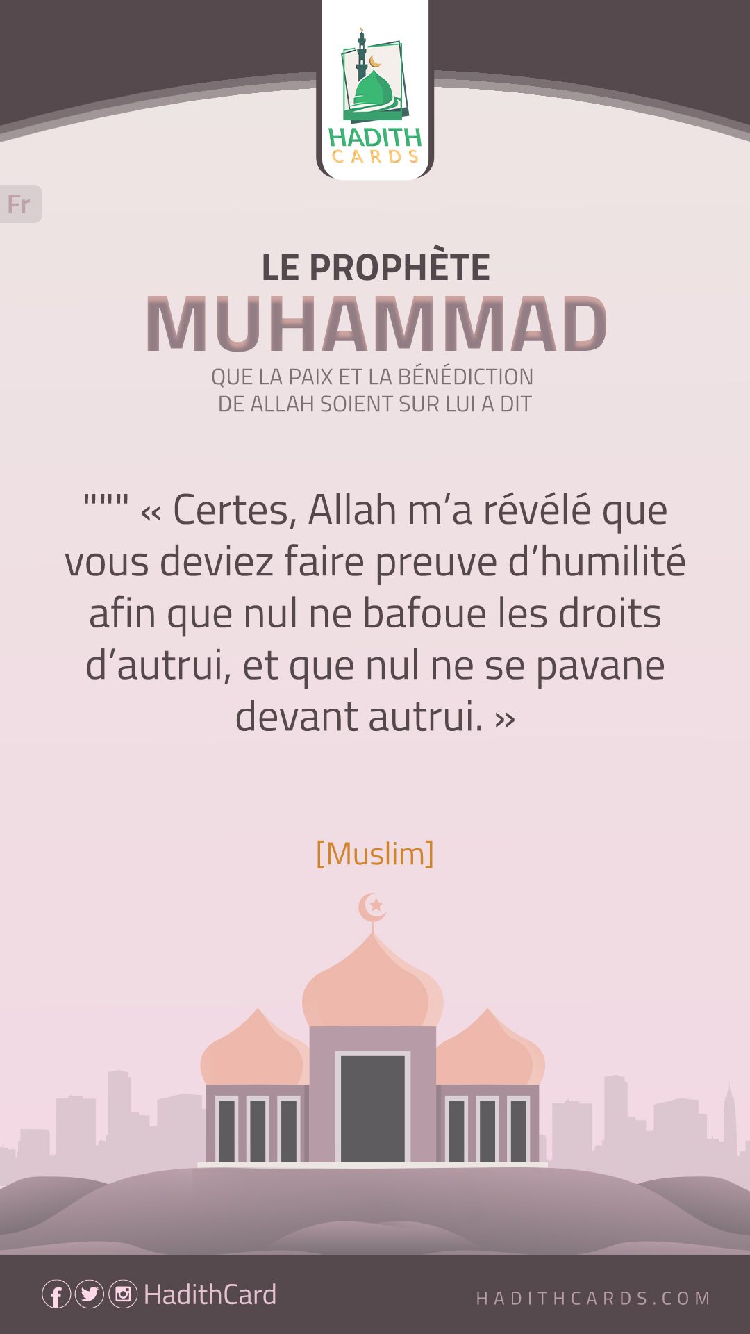 Certes, Allah m’a révélé que vous deviez faire preuve d’humilité afin que nul ne bafoue les droits d’autrui, et que nul ne se pavane devant autrui