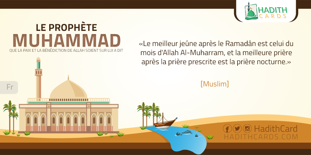 Le meilleur jeûne après le Ramaḍân est celui du mois d'Allah Al-Muḥarram, et la meilleure prière après la prière prescrite est la prière nocturne