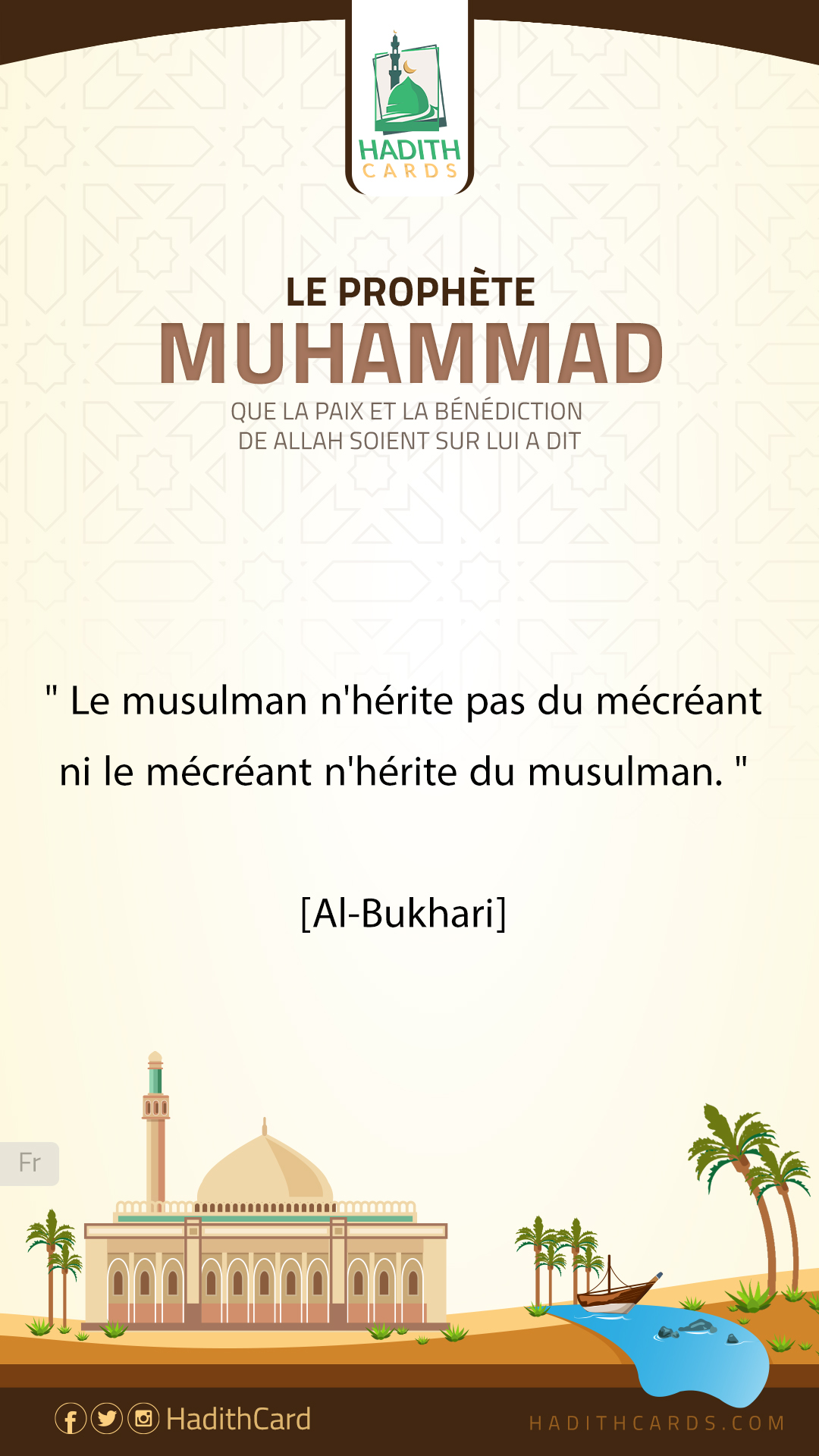 Le musulman n'hérite pas du mécréant ni le mécréant n'hérite du musulman