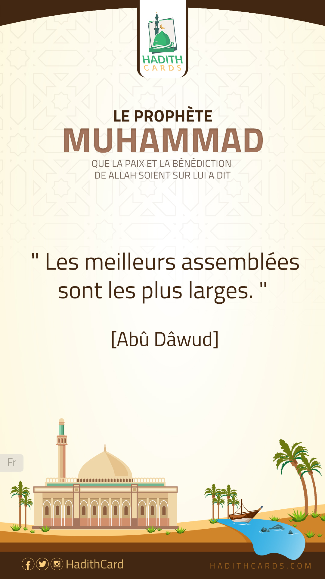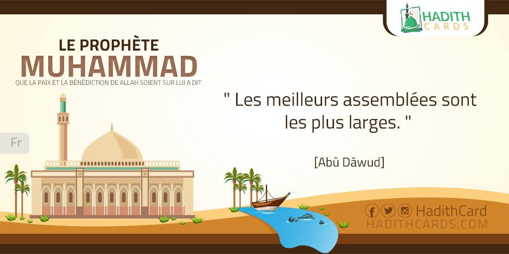 عَنْ أَبِي سَعِيدٍ الْخُدْرِيِّ، قَالَ: سَمِعْتُ رَسُولَ اللَّهِ -صَلَّى اللهُ عَلَيْهِ وَسَلَّمَ-، يَقُولُ:«خير المجالس أوسعها». (أبو داود)