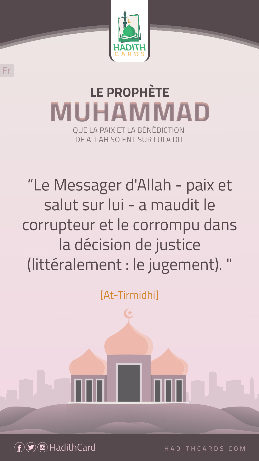 Le Messager d'Allah - paix et salut sur lui - a maudit le corrupteur et le corrompu dans la décision de justice (littéralement : le jugement)