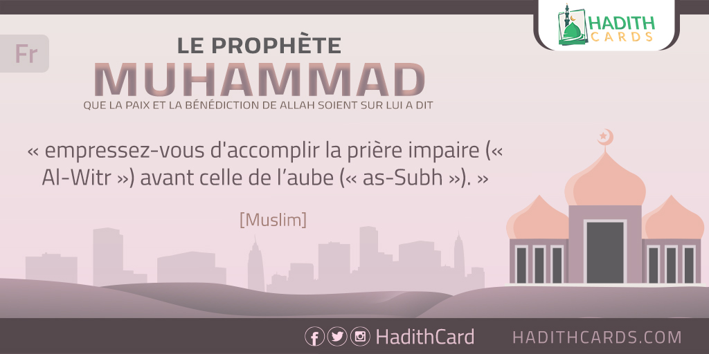 empressez-vous d'accomplir la prière impaire (« Al-Witr ») avant celle de l’aube (« as-Subh