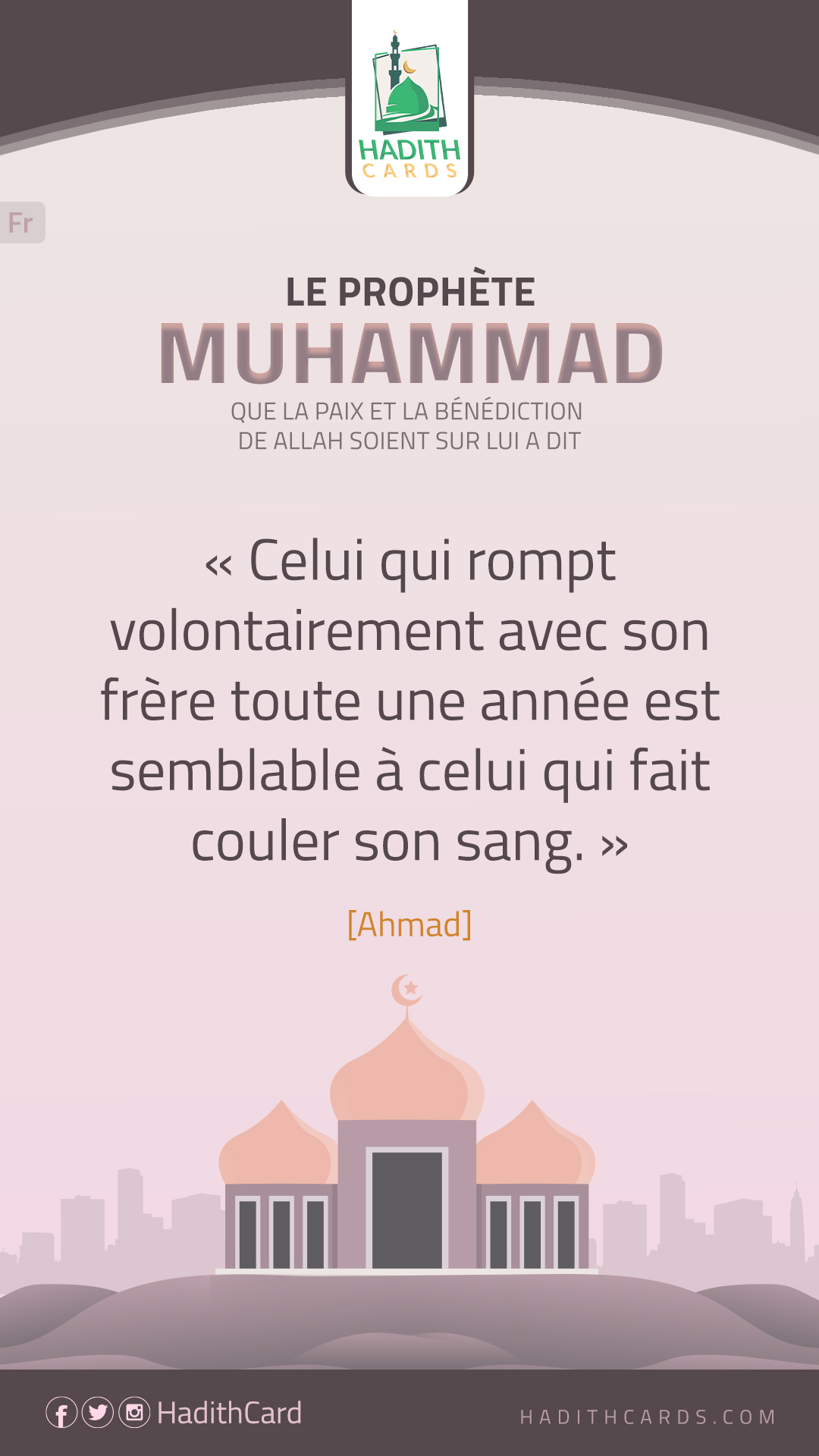 «من هَجَر أخَاه سَنَة فهو كَسَفْكِ دَمِهِ». (رواه احمد)