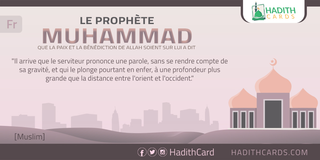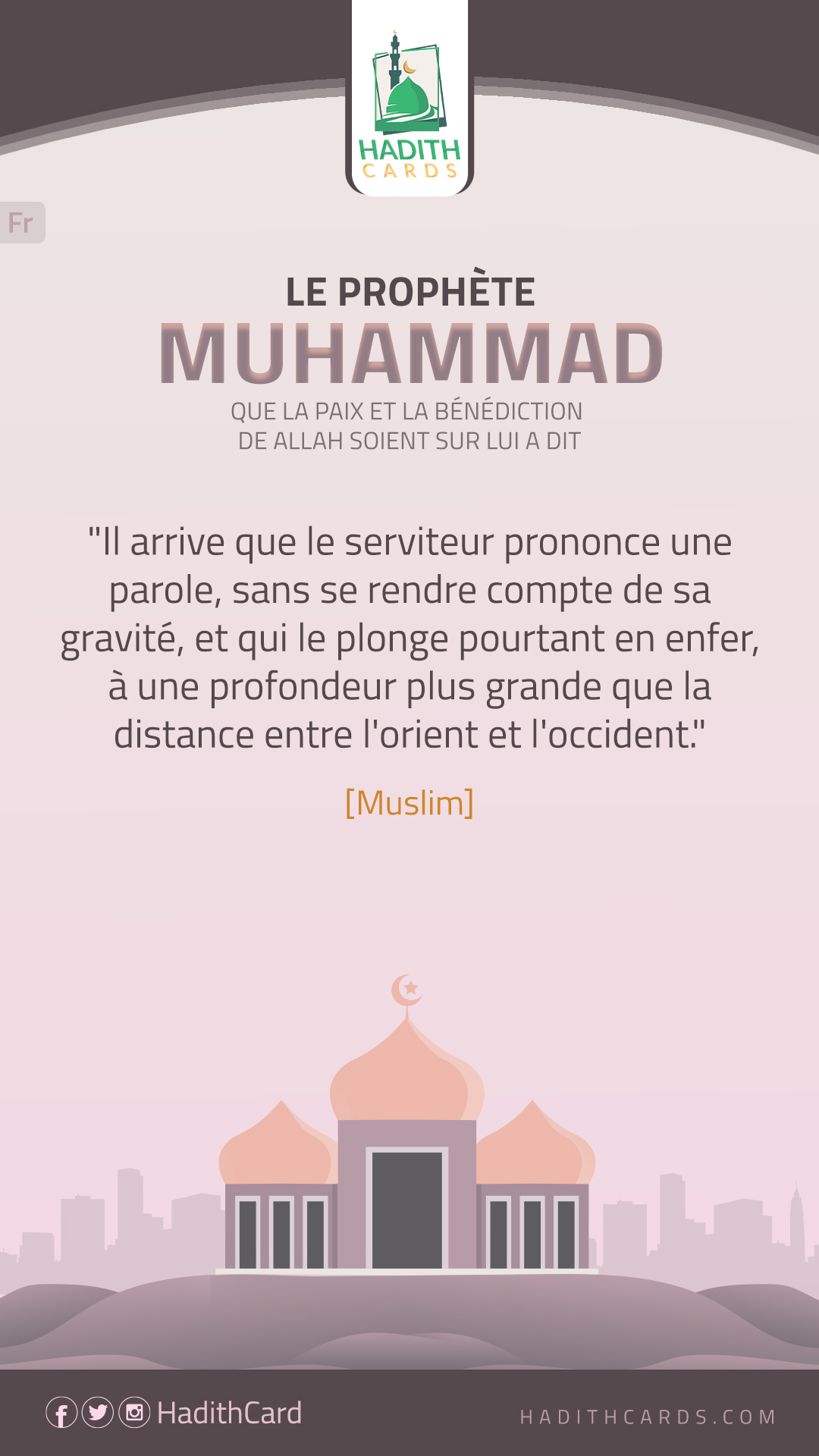 «إن العبد ليتكلم بالكلمة ما يتبين فيها يزلُّ بها إلى النار أبعدَ مما بين المشرق والمغرب».