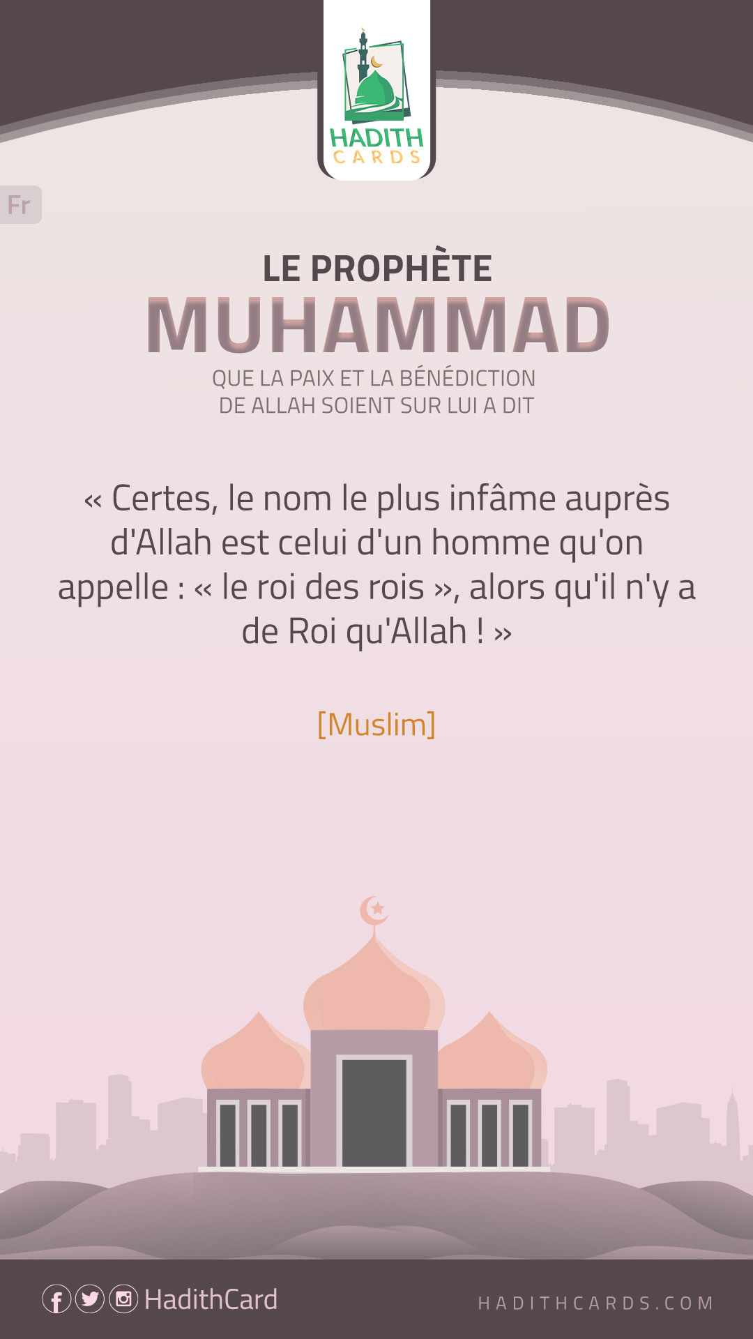 Certes, le nom le plus infâme auprès d'Allah est celui d'un homme qu'on appelle : « le roi des rois », alors qu'il n'y a de Roi qu'Allah !