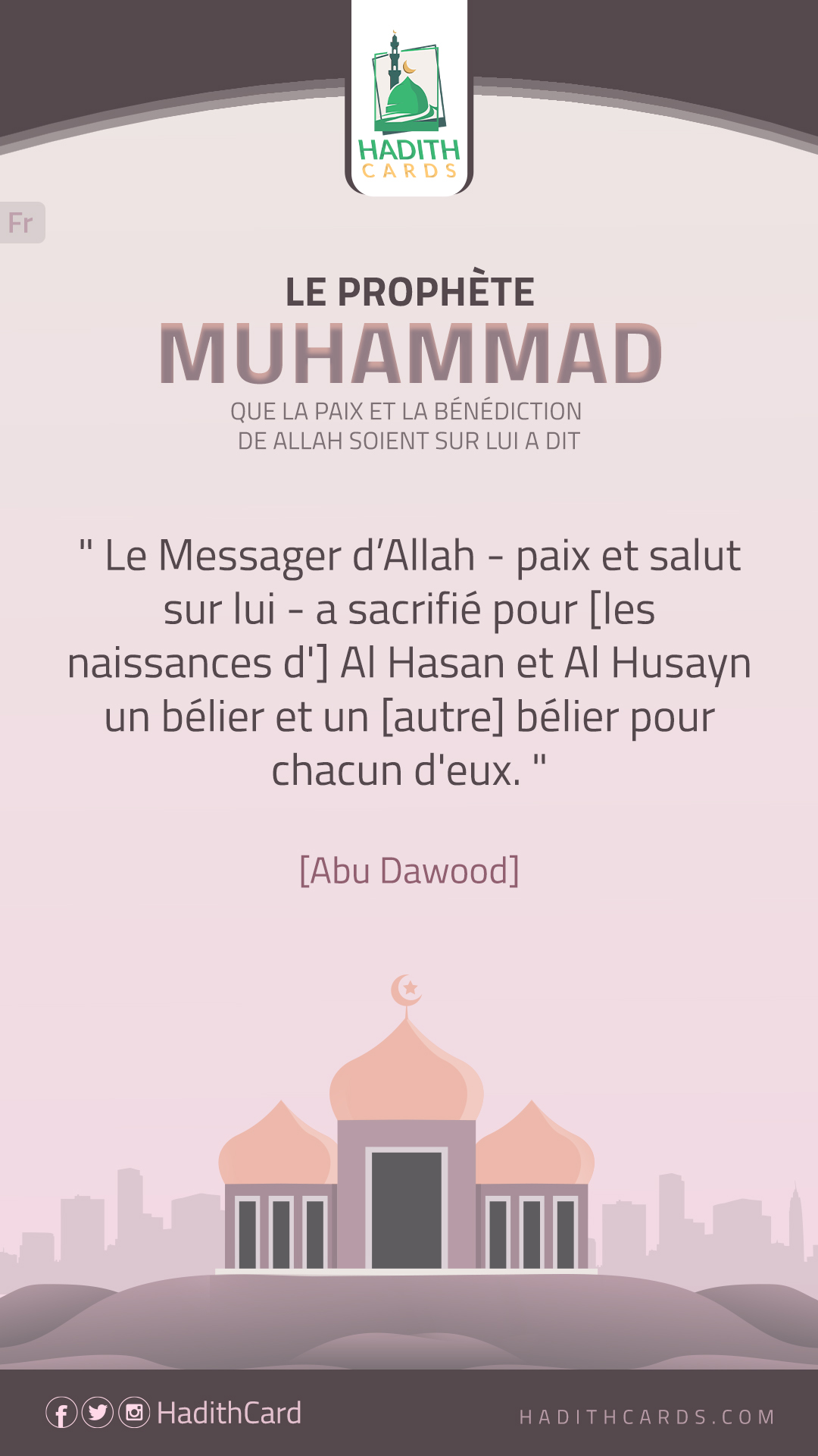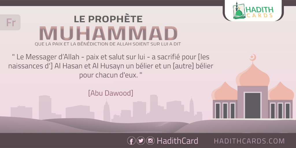 Le Messager d’Allah - paix et salut sur lui - a sacrifié pour [les naissances d'] Al Hasan et Al Husayn un bélier et un [autre] bélier pour chacun d'eux