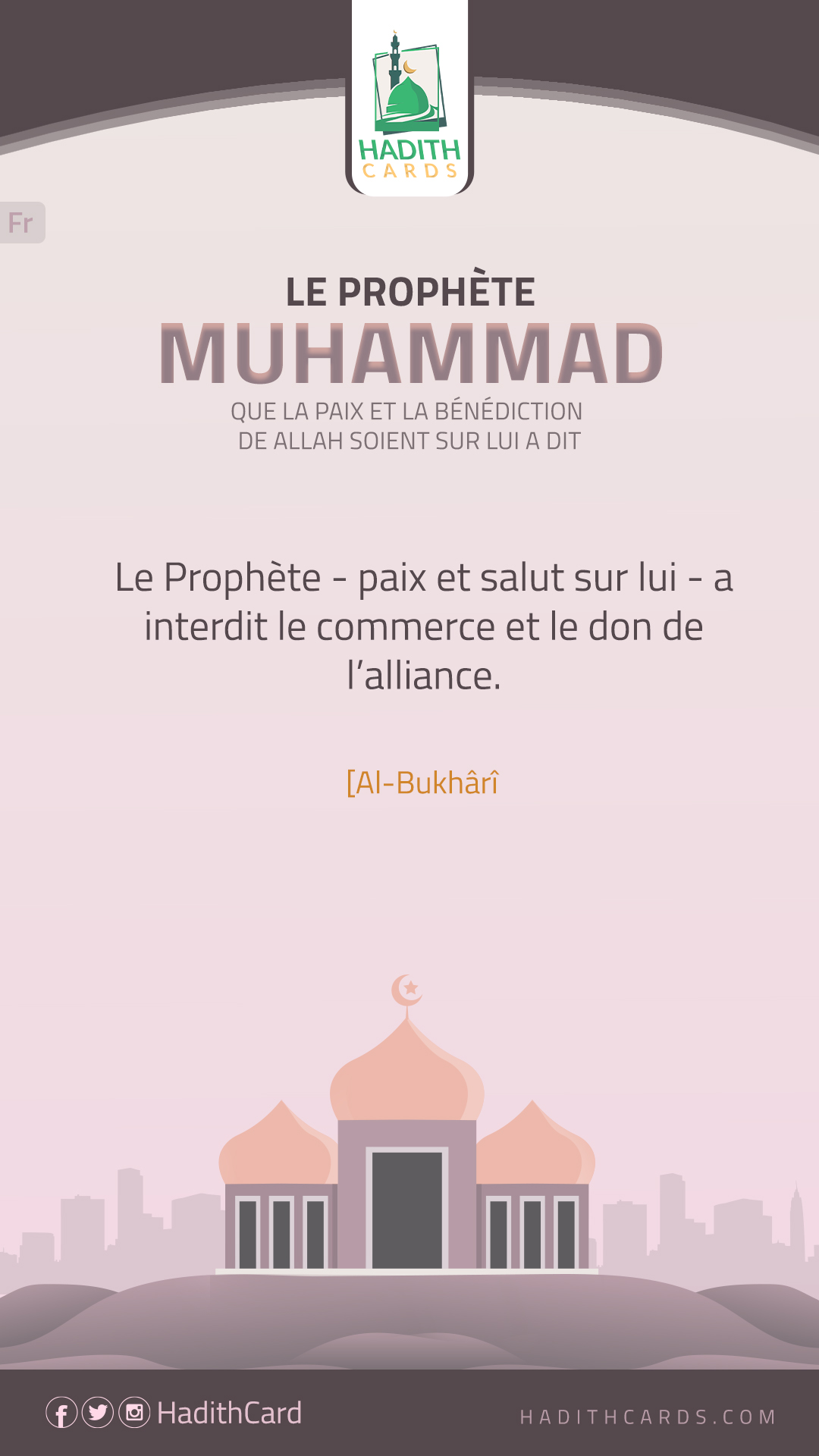 relate que le Prophète - paix et salut sur lui - a interdit le commerce et le don de l’alliance