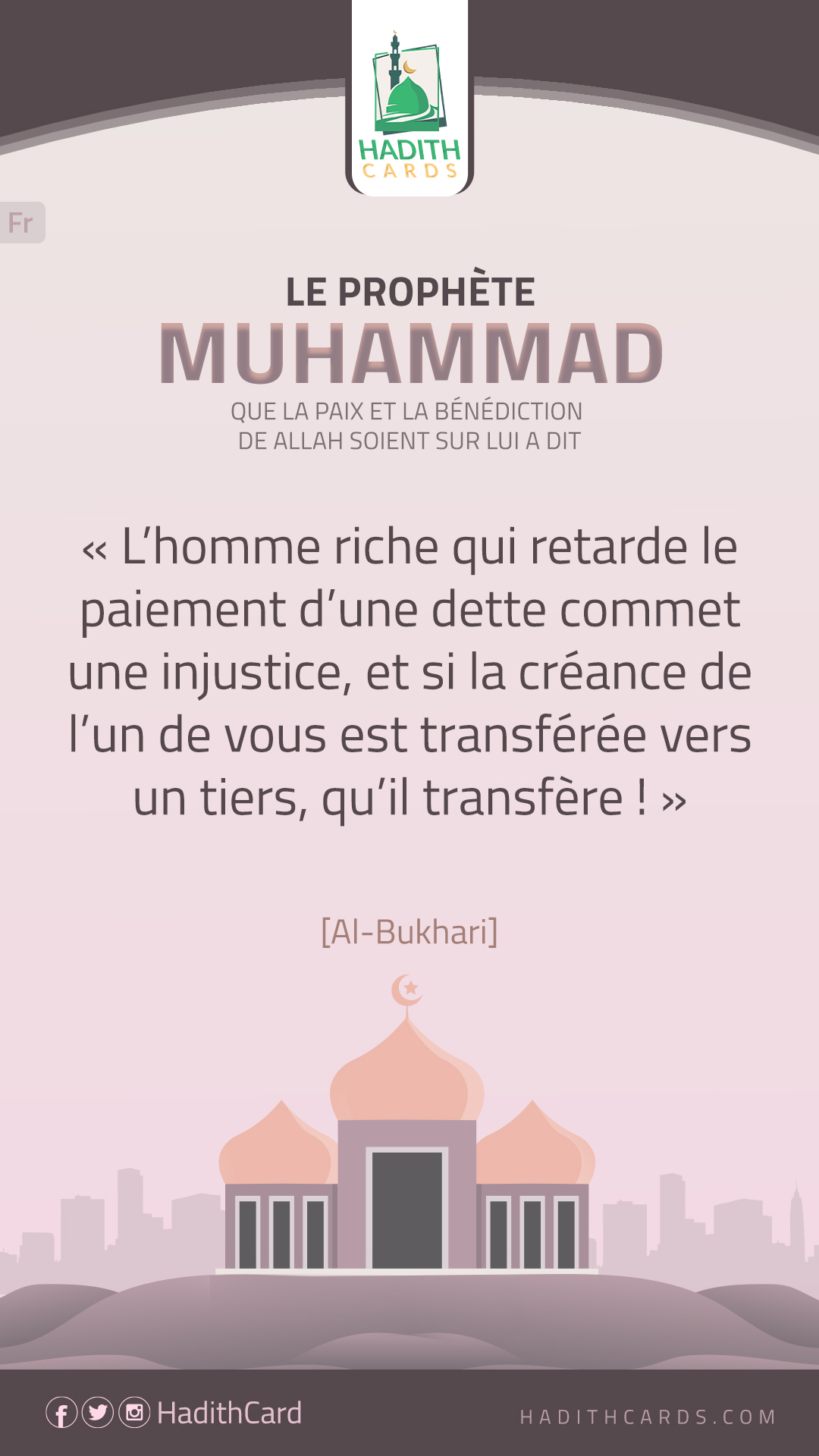 L’homme riche qui retarde le paiement d’une dette commet une injustice, et si la créance de l’un de vous est transférée vers un tiers, qu’il transfère !
