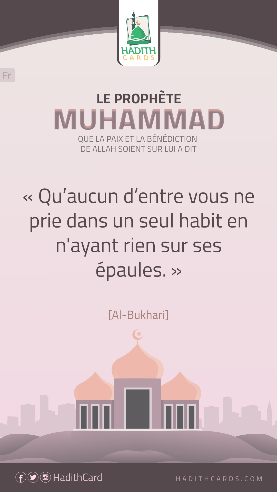Qu’aucun d’entre vous ne prie dans un seul habit en n'ayant rien sur ses épaules