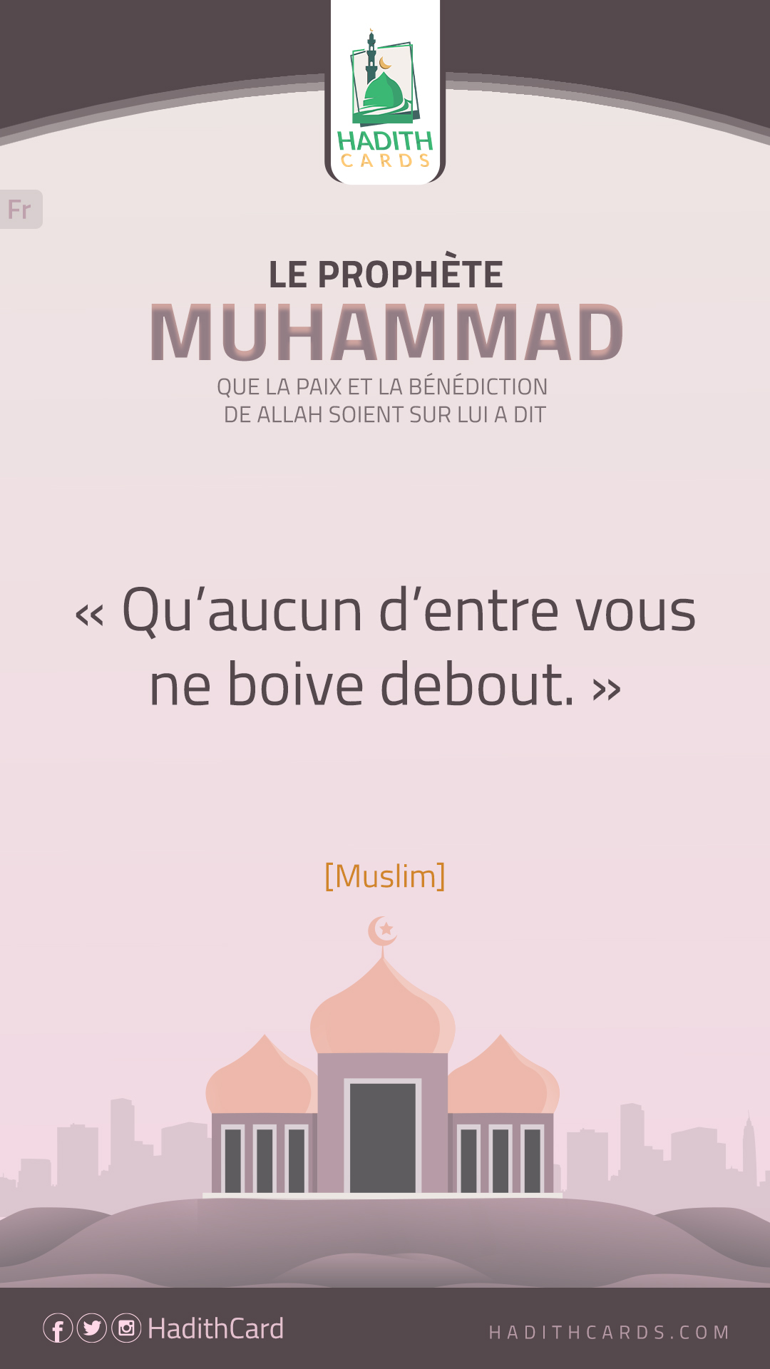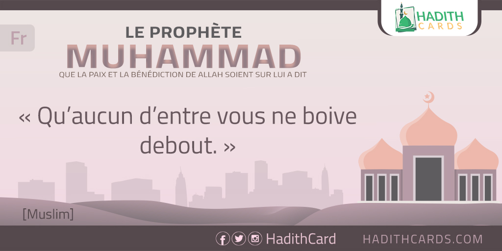 عن أبي هريرة -- قال: قال رسول الله -صلى الله عليه وسلم-: «لا يشربَنَّ أحدٌ منكم قائما». (مسلم)
