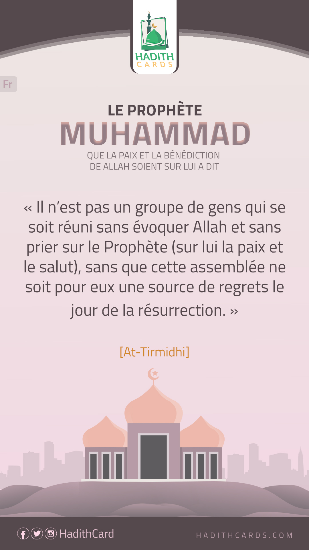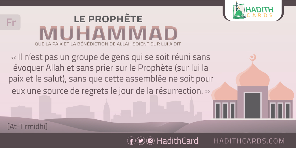 Il n’est pas un groupe de gens qui se soit réuni sans évoquer Allah et sans prier sur le Prophète (sur lui la paix et le salut), sans que cette assemblée ne soit pour eux une source de regrets le jour de la résurrection