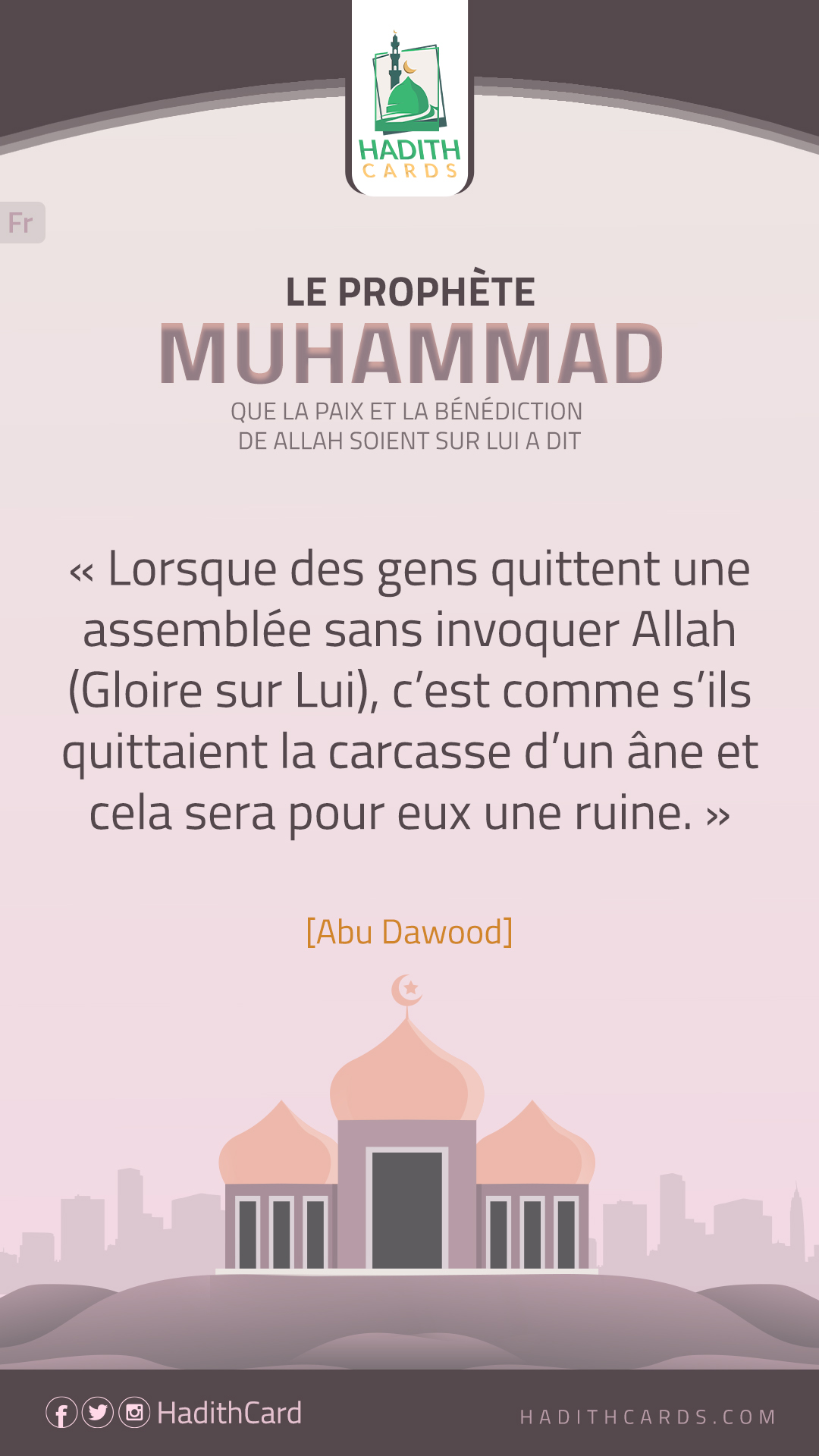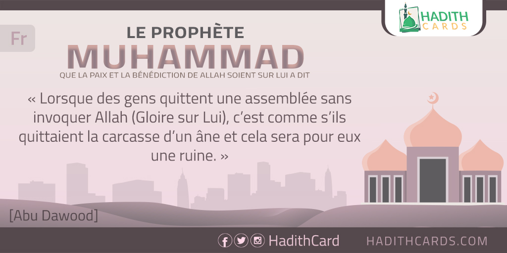 Lorsque des gens quittent une assemblée sans invoquer Allah (Gloire sur Lui), c’est comme s’ils quittaient la carcasse d’un âne et cela sera pour eux une ruine