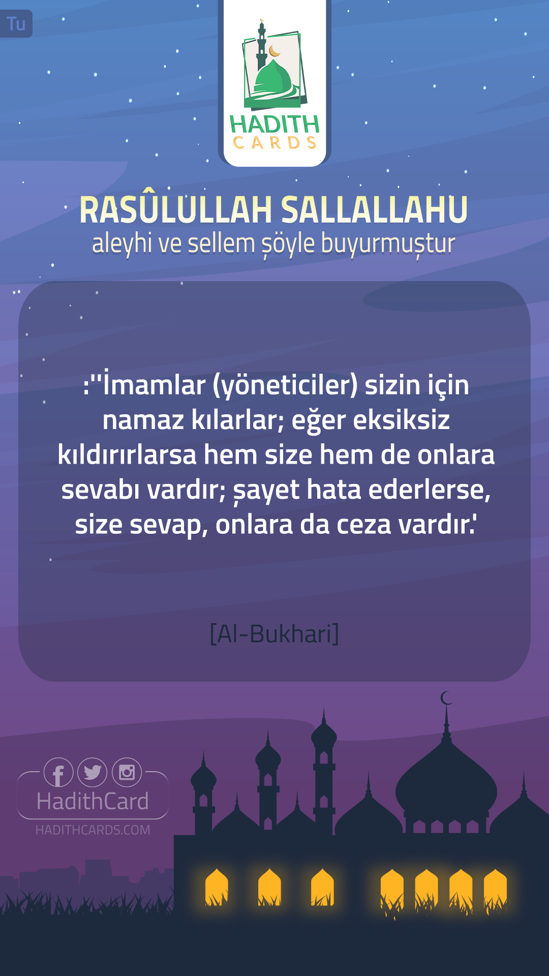 İmamlar (yöneticiler) sizin için namaz kılarlar; eğer eksiksiz kıldırırlarsa hem size hem de onlara sevabı vardır; şayet hata ederlerse, size sevap, onlara da ceza vardır