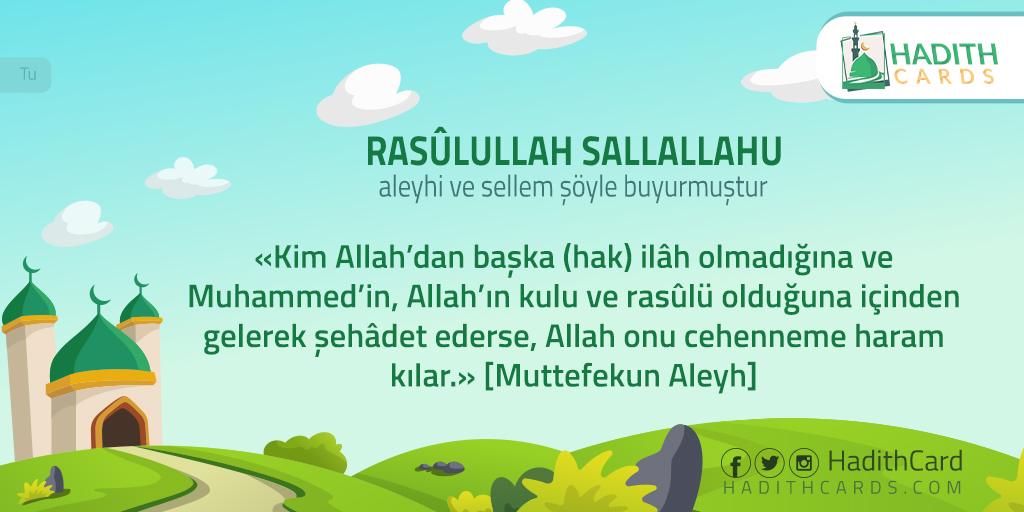 Kim Allah’dan başka (hak) ilâh olmadığına ve Muhammed’in, Allah’ın kulu ve rasûlü olduğuna içinden gelerek şehâdet ederse, Allah onu cehenneme haram kılar