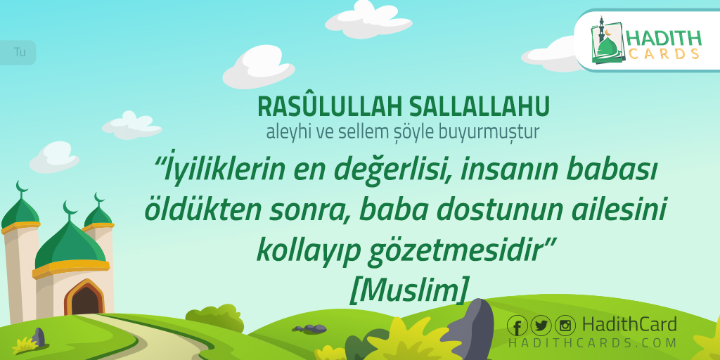 «إِنَّ مِنْ أَبَرِّ البِّر أَنْ يَصِلَ الرَّجُلُ أَهْلَ وُدَّ أَبِيهِ بَعْدَ أَنْ يُوَلِّيَ» [مسلم]