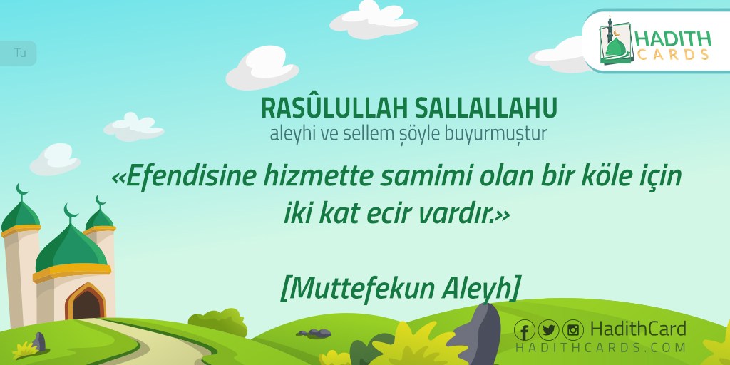 Efendisine hizmette samimi olan bir köle için iki kat ecir vardır