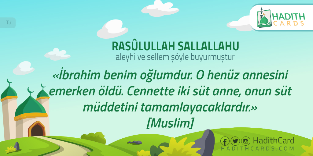 İbrahim benim oğlumdur. O henüz annesini emerken öldü. Cennette iki süt anne, onun süt müddetini tamamlayacaklardır