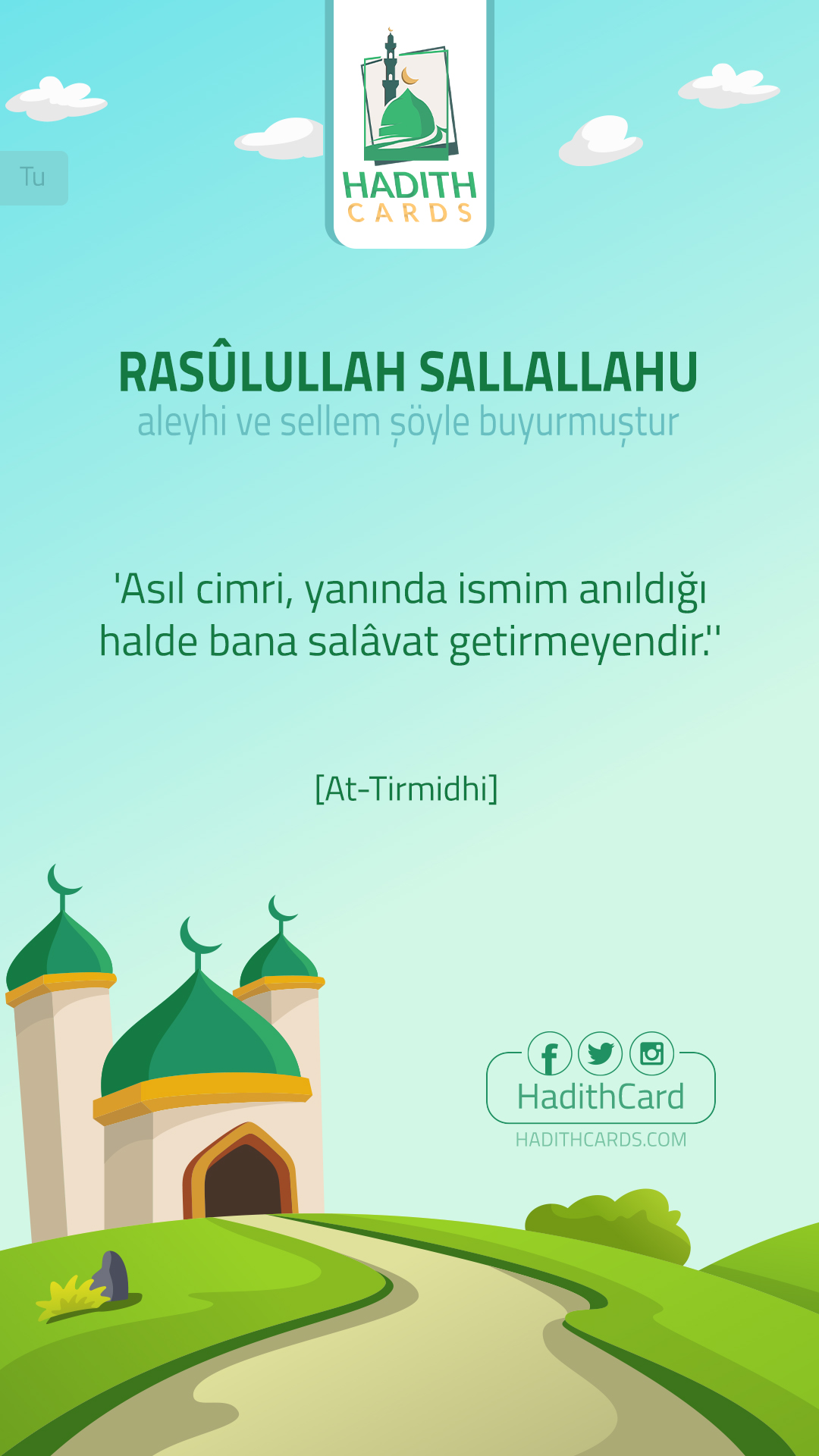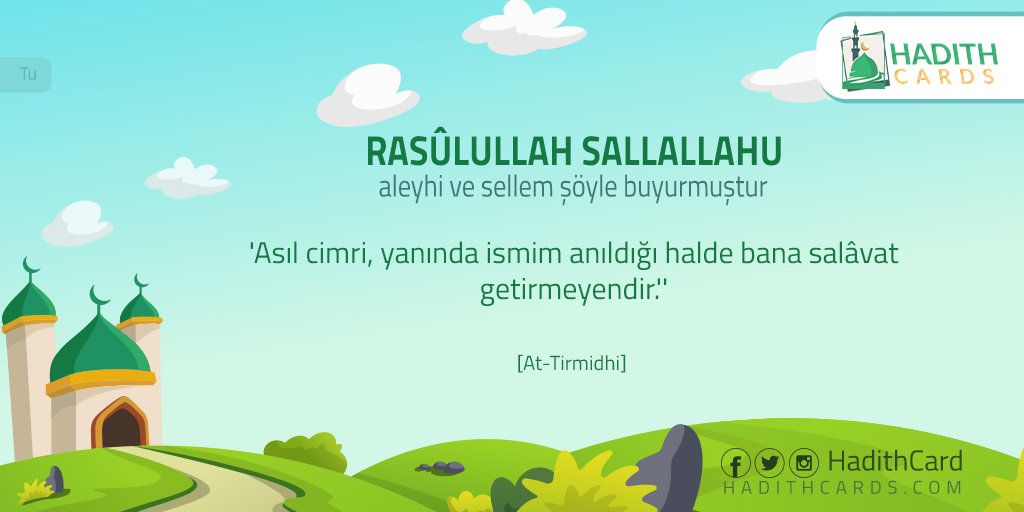 tan rivayet edildiğine göre:Nebî -sallallahu aleyhi ve sellem- şöyle buyurmuştur:''Asıl cimri, yanında ismim anıldığı halde bana salâvat getirmeyendir.