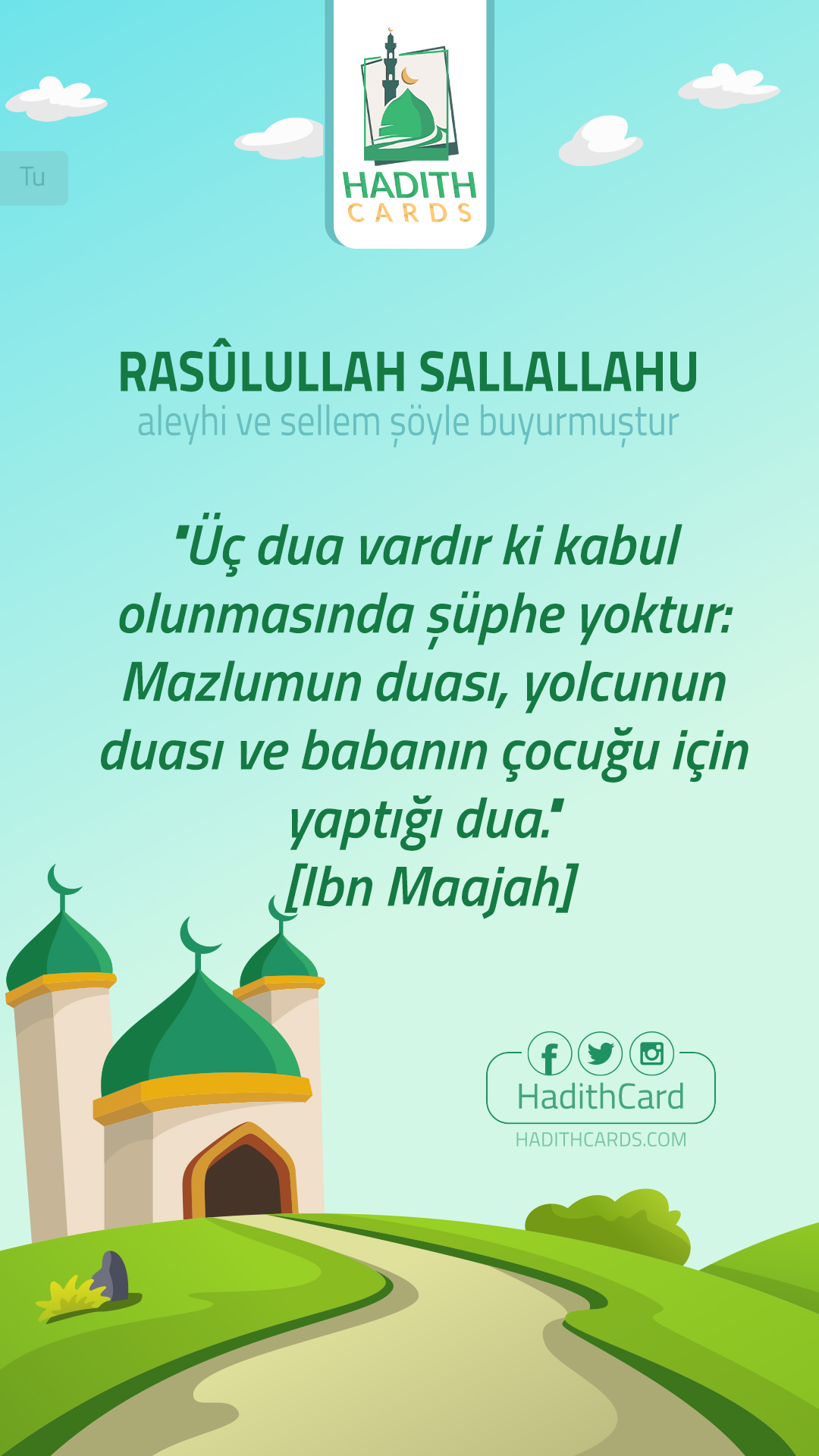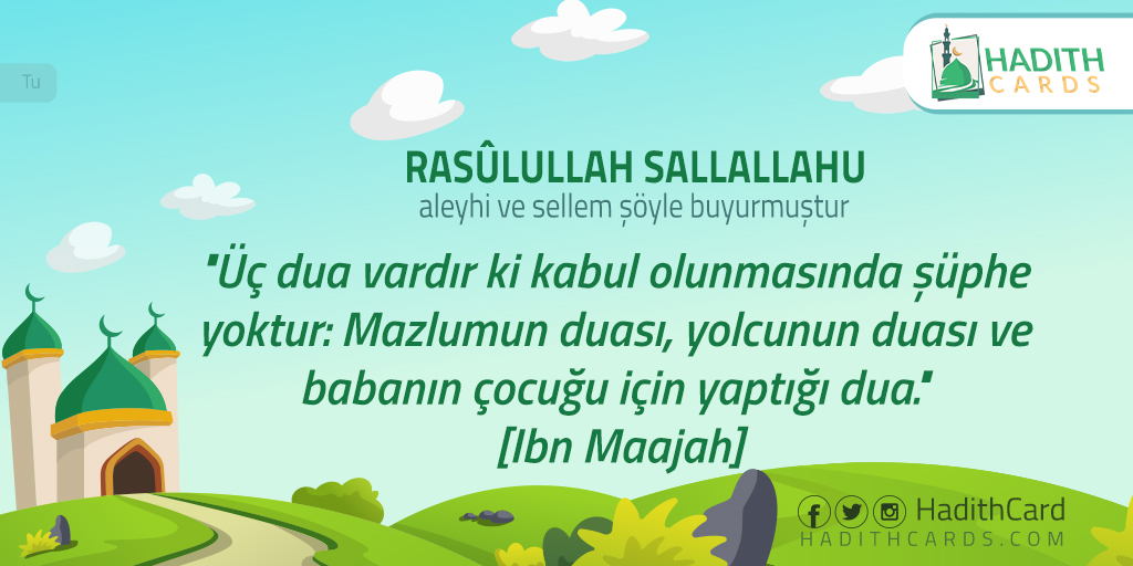 Üç dua vardır ki kabul olunmasında şüphe yoktur: Mazlumun duası, yolcunun duası ve babanın çocuğu için yaptığı dua