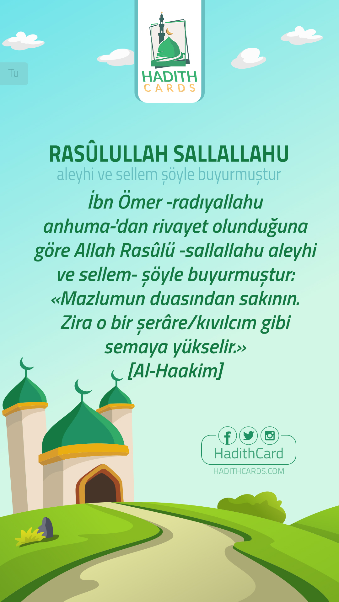 İbn Ömer -radıyallahu anhuma-'dan rivayet olunduğuna göre Allah Rasûlü -sallallahu aleyhi ve sellem- şöyle buyurmuştur: «Mazlumun duasından sakının. Zira o bir şerâre/kıvılcım gibi semaya yükselir