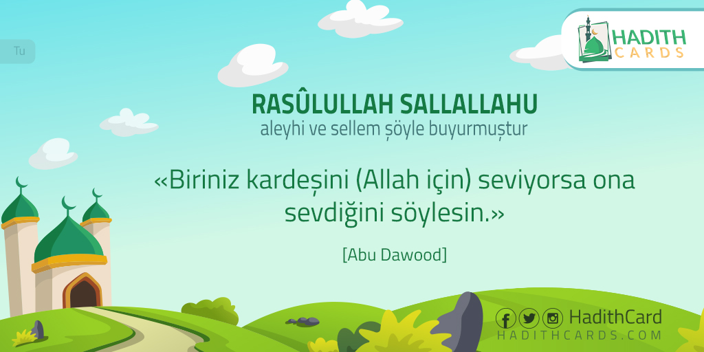 Biriniz kardeşini (Allah için) seviyorsa ona sevdiğini söylesin