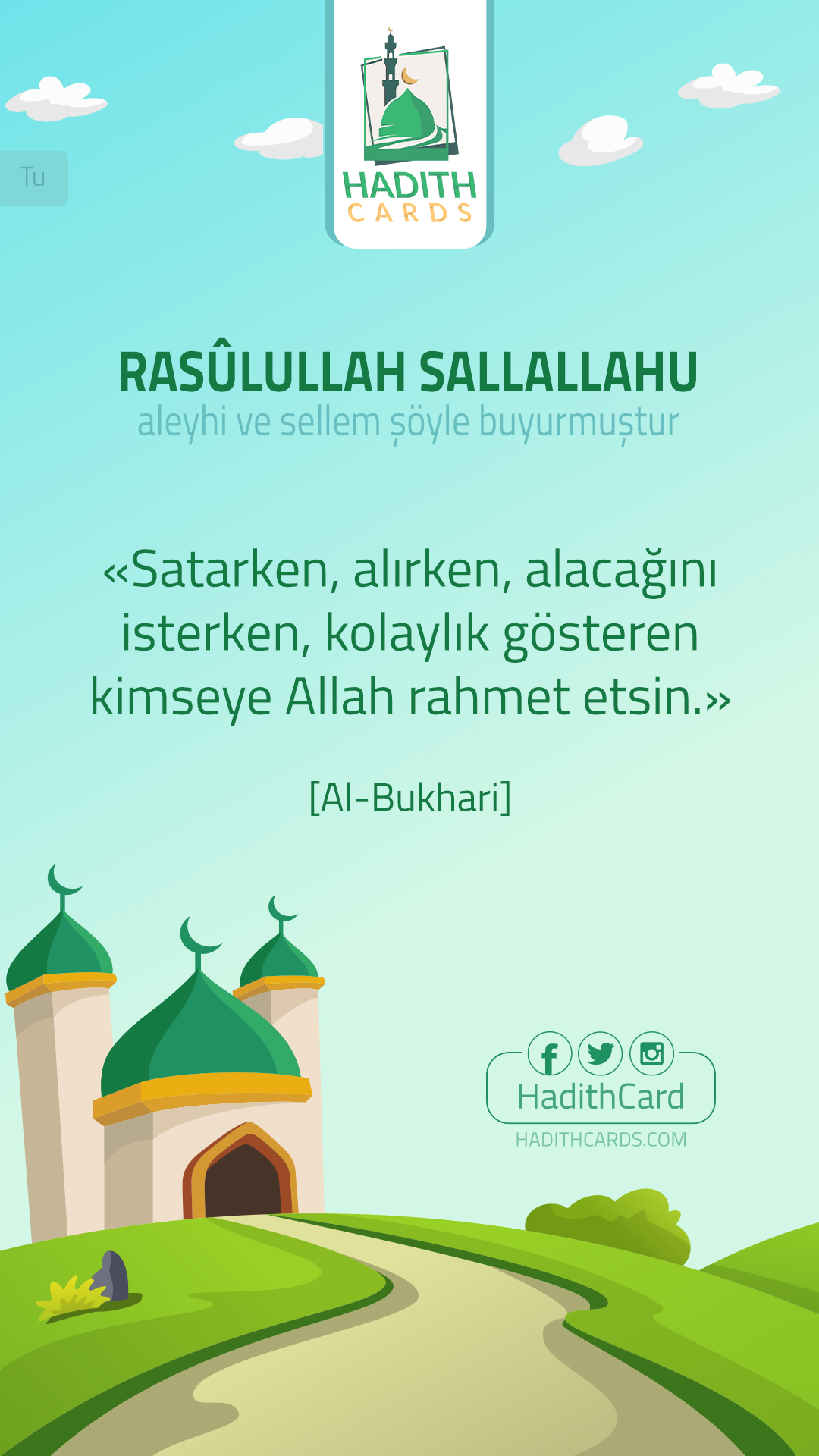 Satarken, alırken, alacağını isterken, kolaylık gösteren kimseye Allah rahmet etsin