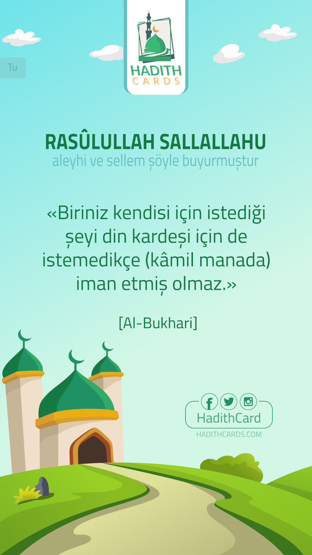 Biriniz kendisi için istediği şeyi din kardeşi için de istemedikçe (kâmil manada) iman etmiş olmaz