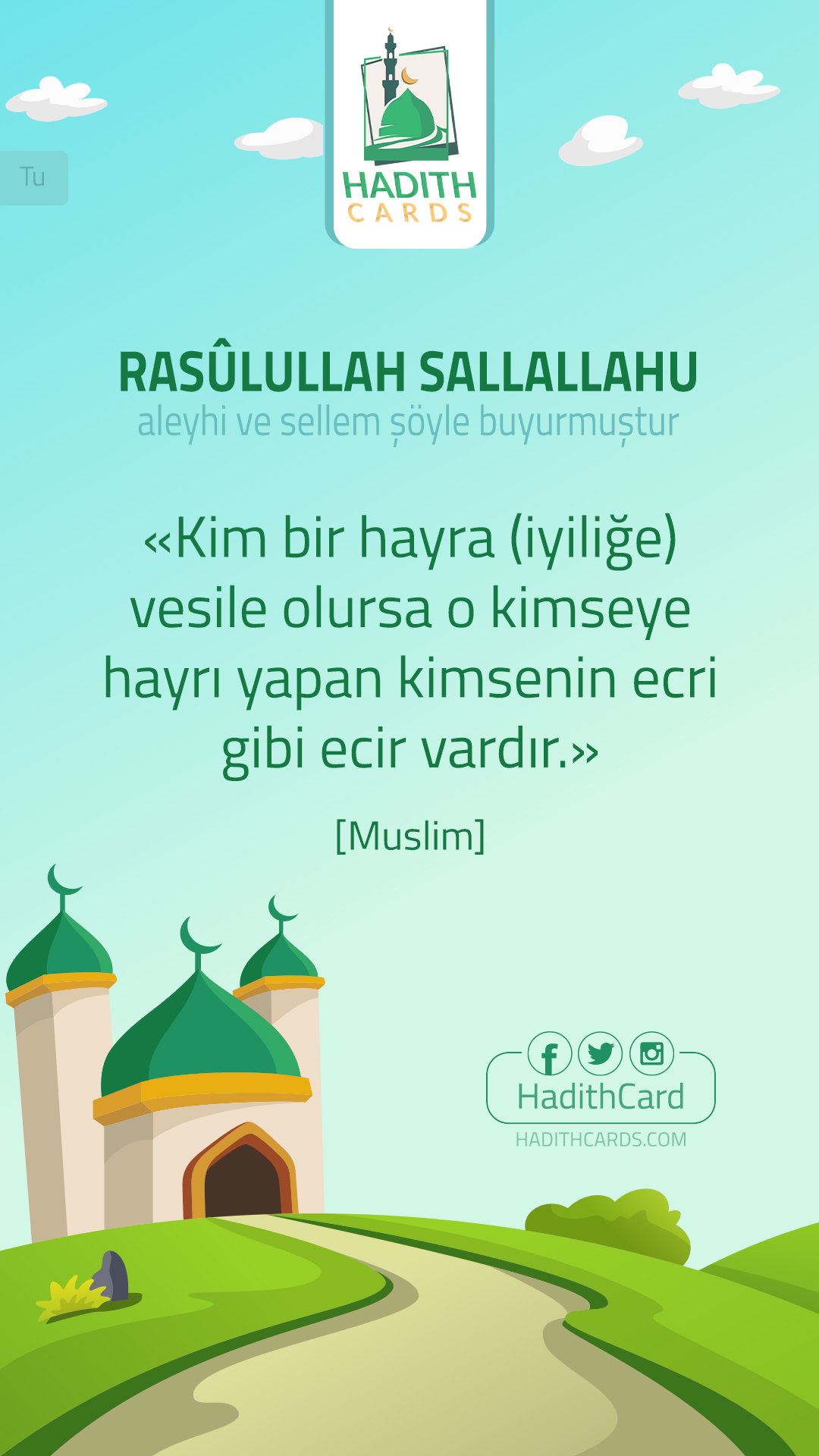 Kim bir hayra (iyiliğe) vesile olursa o kimseye hayrı yapan kimsenin ecri gibi ecir vardır