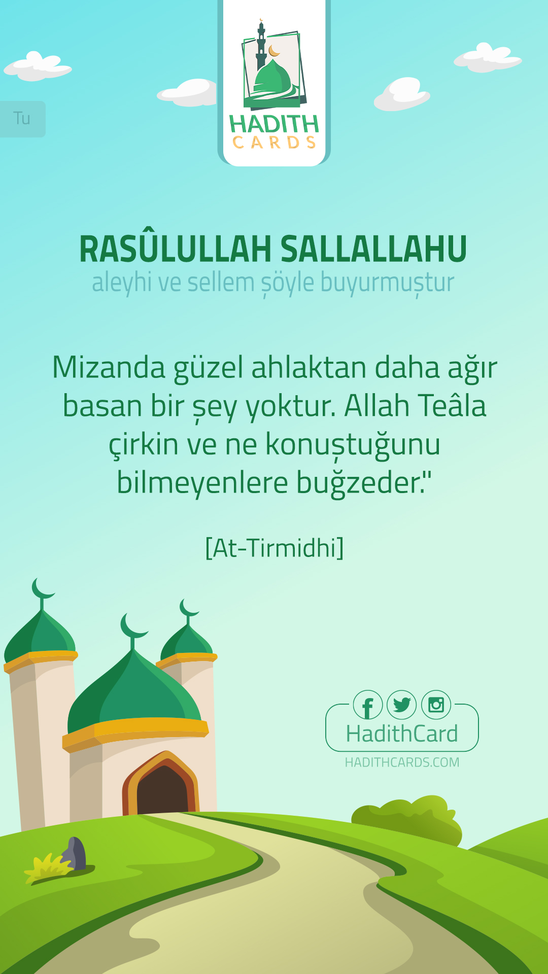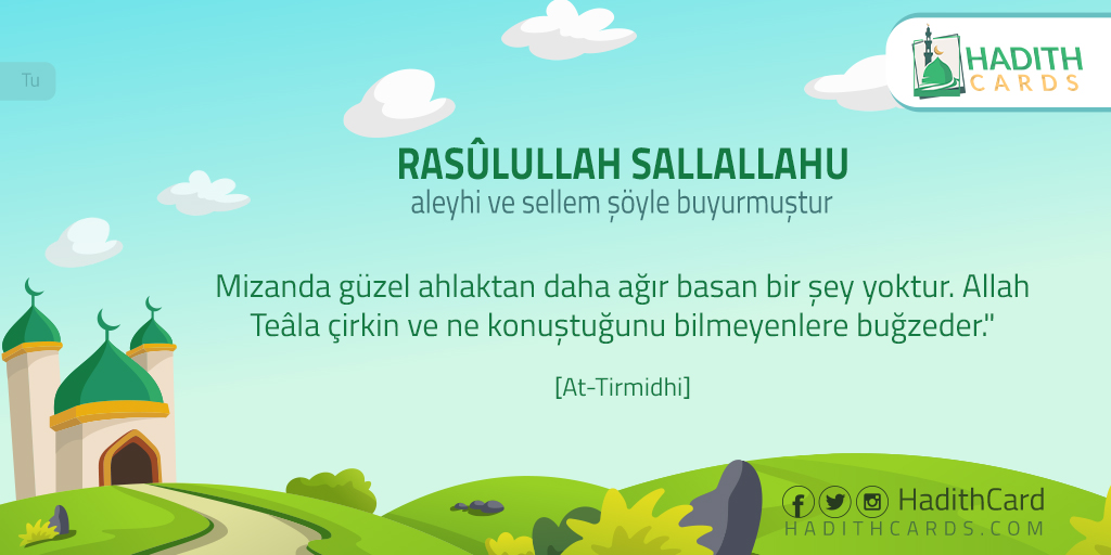«ما من شيء في الميزان أثْقَلُ مِنْ حُسْنِ الْخُلُقِ. وإن الله يُبْغِض الفاحش البَذِيء». (الترمذي)