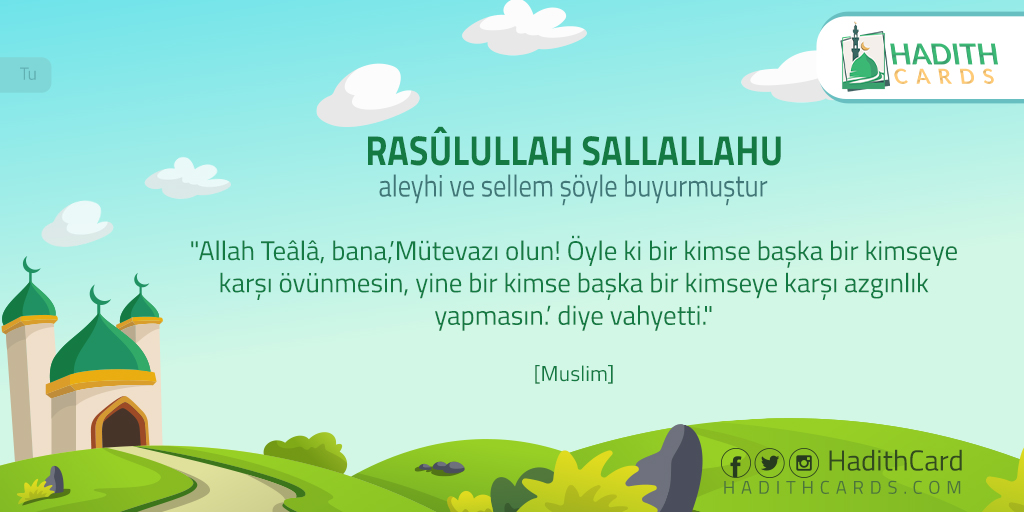 Allah Teâlâ, bana,’Mütevazı olun! Öyle ki bir kimse başka bir kimseye karşı övünmesin, yine bir kimse başka bir kimseye karşı azgınlık yapmasın