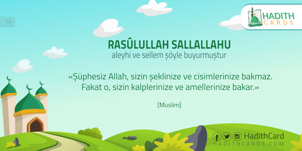 Şüphesiz Allah, sizin şeklinize ve cisimlerinize bakmaz. Fakat o, sizin kalplerinize ve amellerinize bakar
