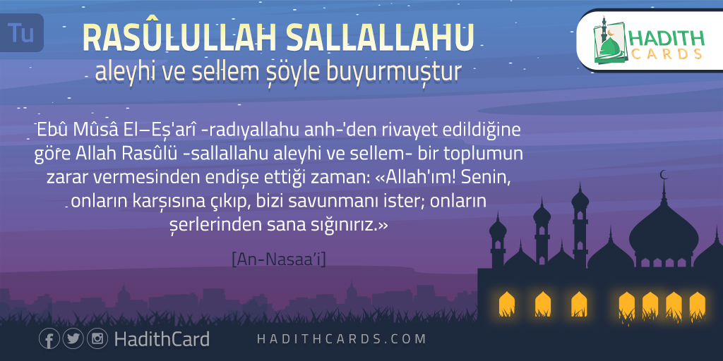 göre Allah Rasûlü -sallallahu aleyhi ve sellem- bir toplumun zarar vermesinden endişe ettiği zaman: «Allah'ım! Senin, onların karşısına çıkıp, bizi savunmanı ister; onların şerlerinden sana sığınırız