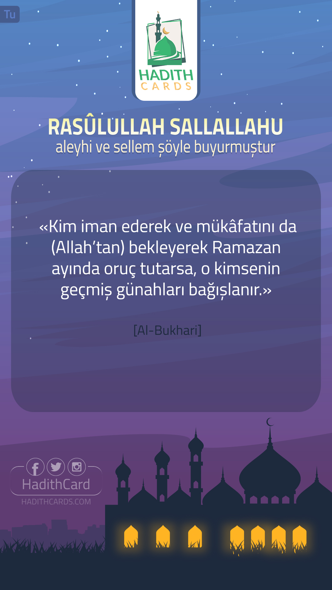 Kim iman ederek ve mükâfatını da (Allah’tan) bekleyerek Ramazan ayında oruç tutarsa, o kimsenin geçmiş günahları bağışlanır
