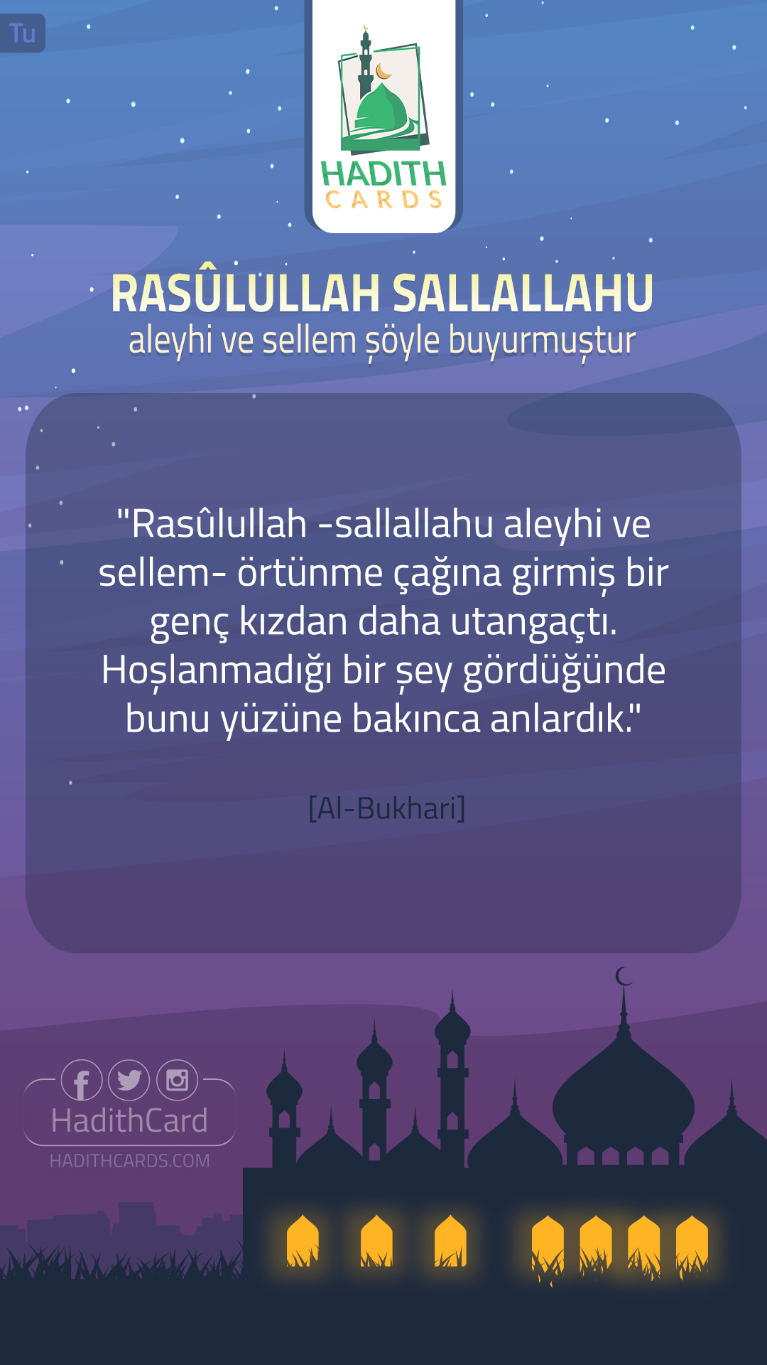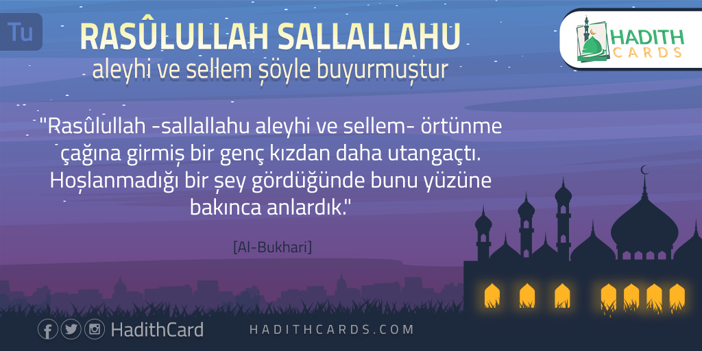 Rasûlullah -sallallahu aleyhi ve sellem- örtünme çağına girmiş bir genç kızdan daha utangaçtı. Hoşlanmadığı bir şey gördüğünde bunu yüzüne bakınca anlardık