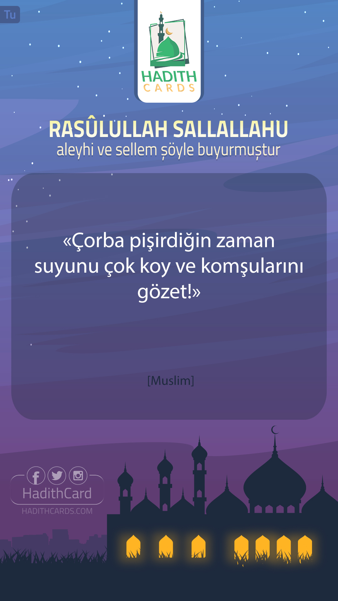 "«إذا طبختَ مَرَقَة, فأكثر ماءها, وتعاهدْ جِيْرانك». [صحيح.] - [رواه مسلم.]"