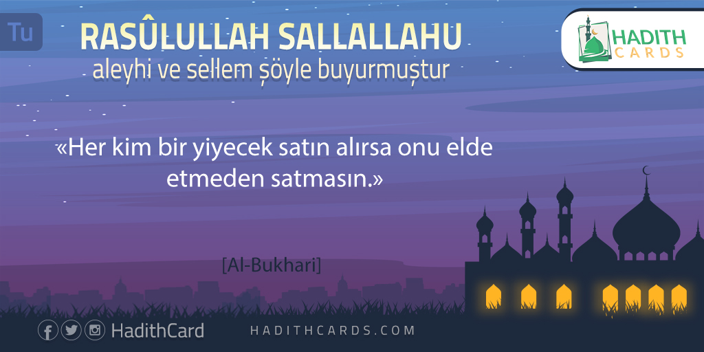 Her kim bir yiyecek satın alırsa onu elde etmeden satmasın